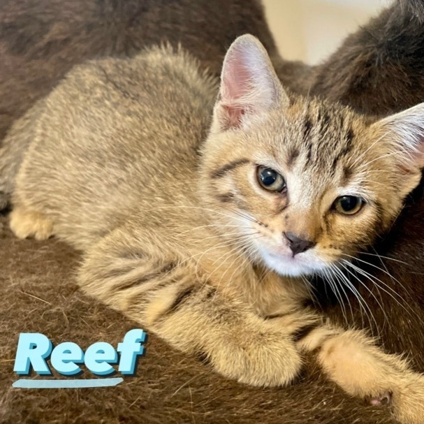 Meet Reef, from our ocean-themed kittens! Reef is a playful little guy, but he is out like a light when he is comfortable. He loves to snuggle with his siblings. NOTE: our kittens are not currently spayed/neutered but our adoption fees COVER this surgery for when they are ready (5-6 months old). Kittens must be adopted in a pair IF you do NOT already have a young cat, or you can adopt a younger cat plus a kitten.
