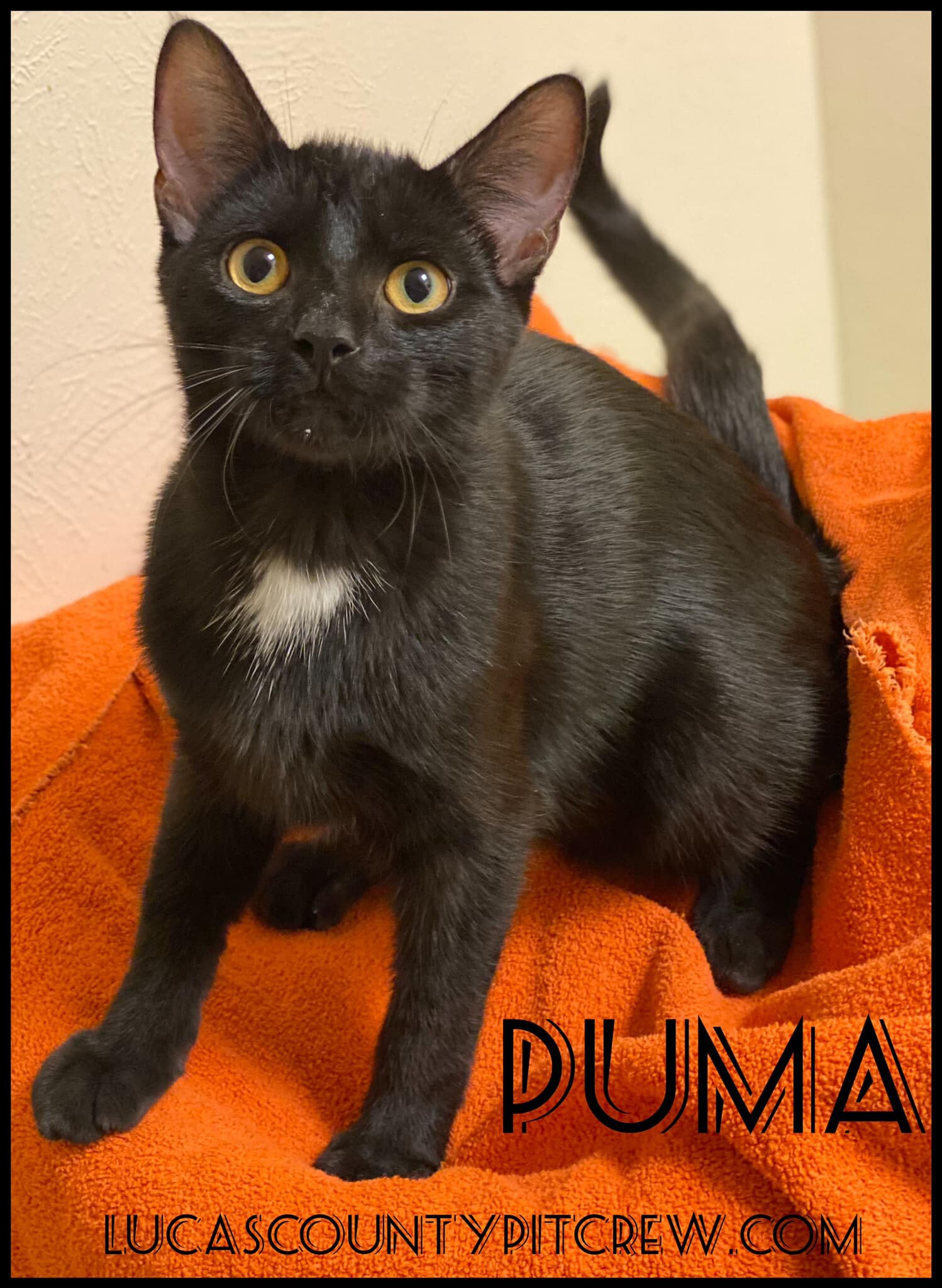 Puma! This snuggly young cat (DOB 4/2022) is searching for a forever home. He has a heart shaped mark on his chest. Puma loves attention and playing with other cats and kittens. He is living in a foster home with other cats and has been exposed to dogs. With proper introductions he could learn to enjoy their company. While we do not agree with the declawing of cats, he was surrendered to the rescue already declawed. He is neutered, micro-chipped, tested negative for FIV and FeLV, vaccinated, dewormed, and has been treated with Revolution. His adoption fee is $200 dollars. To adopt him, or any of our LCPC cats/kittens, email pitcrewapplication@gmail.com
