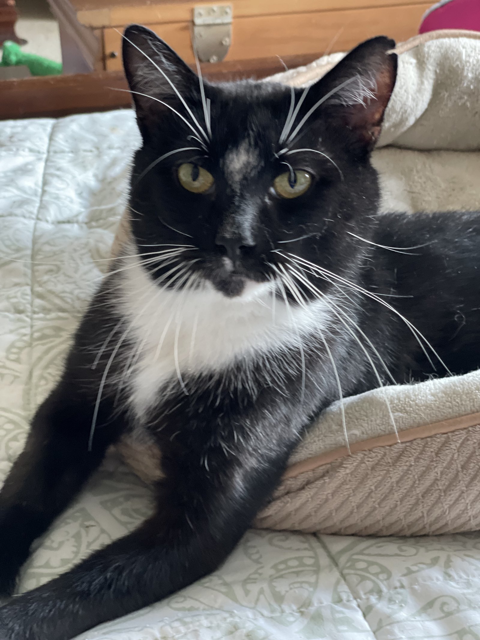 Ronny came into the shelter with a foot injury. After many procedures and medicines, he had to have his middle toe amputated. This boy is a love bug and he doesnt even know hes missing a toe! He is completely healthy and ready for his forever family. Ronny is not a lap cat but he loves to snuggle next to you. He gets along with all cats but he does play a little bit rough so might not be good for young children or an older animal. If youd like to meet this cat or think this cat would be a good match for your family, please complete our adoption questionnaire at http://www.trentoncats.org/adoption-questionnaire/ and let your references know someone will be contacting them soon. All our cats are neutered, up to date on age-appropriate vaccinations, dewormed and flea-treated, tested for FIV/FeLV, and microchipped prior to adoption. Thanks for opting to adopt!