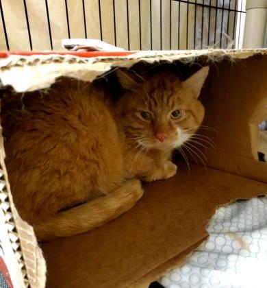Meet Volcano! Volcano is a 3 year old male cat who is still adjusting to life at the shelter. He is very shy when meeting new people and needs a patient adopter to give him the time and space he needs to adjust into his forever home. After you sit with him for a little with some treats he starts to warm up. If youre looking to give a shy cat a forever home, give us a call about Volcano today!