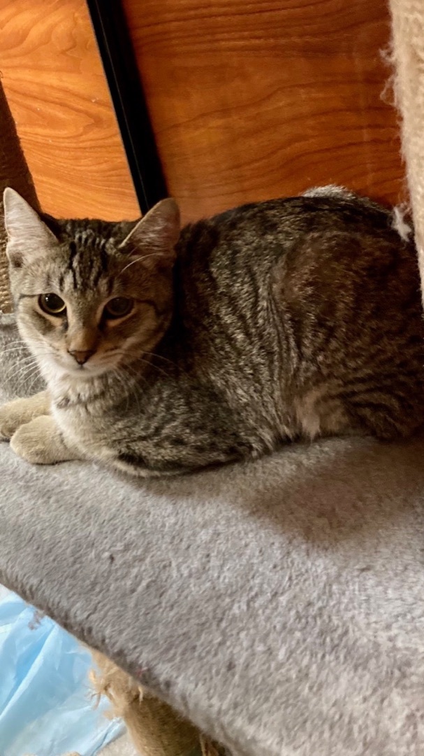 Tucker is 4 months old.  He is sweet, friendly but slightly shy.  He would do best with a feline buddy.
