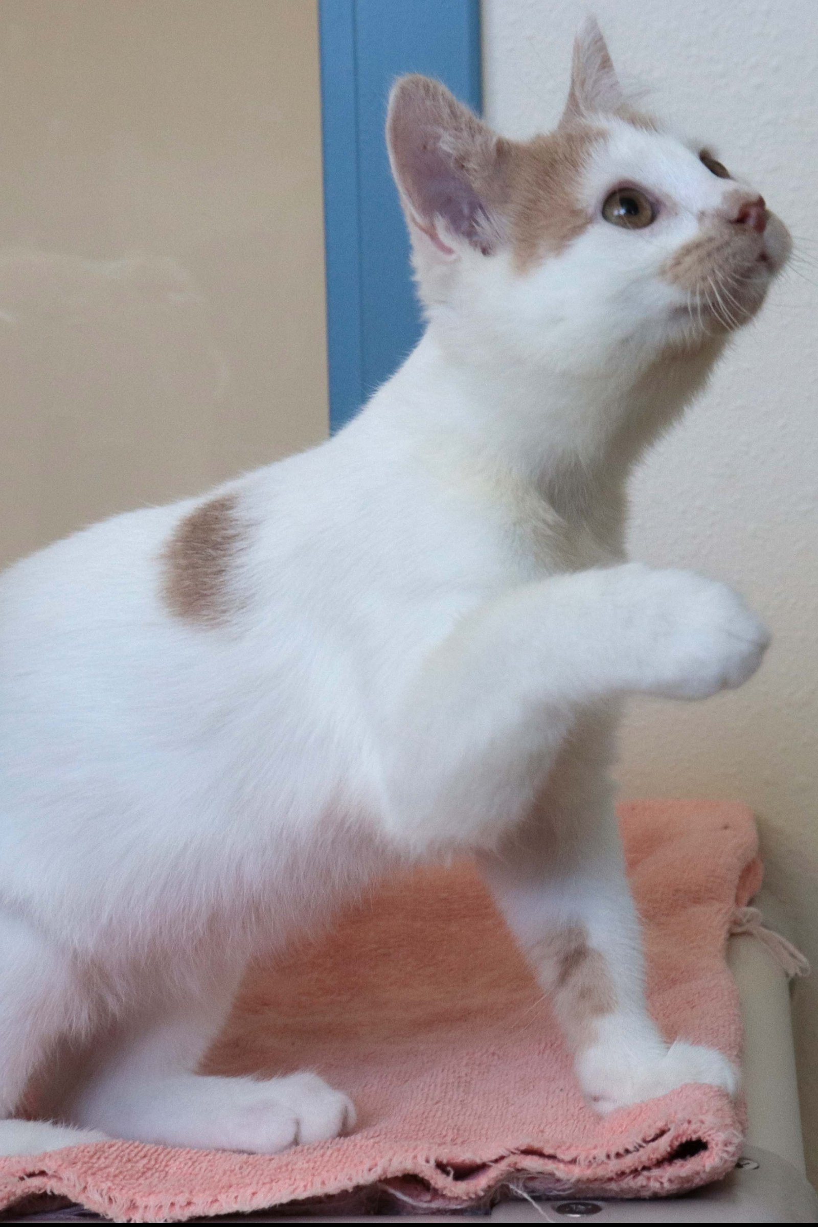 Chester is our little firecracker- he is always on the move (& its next to impossible to get a picture of him)! He had a broken, infected tail that our vet recommended be amputated. Little Chester took it like a champ and is on the mend! This feisty little guy cant wait for his new forever family to find him! We have found that Chester does not play well with other kittens, he is too rough for them and probably due to him coming to the shelter alone so not socialized in playing. We havent tried him with an adult cat. If you would like to meet me, please visit our website and complete the pre-adoption application. Once it has been processed then we can make a date to get together! All cats are spayed/neutered (deposit required if too young), vaccinated, dewormed, flea and tick treated, microchipped and more before adoption. Our adoption policies include: Application, Vet reference, Landlord approval & Criminal Background Check. HSBC has a policy of not declawing, which is included on our Adoption Contract. We do not do same day adoptions. We request that you call for an appointment after your application has been approved to come and visit the cat of your choice. Please visit our website for additional information. The online application can be found at: https://hsburnettcty.org/adoption-guidelines/