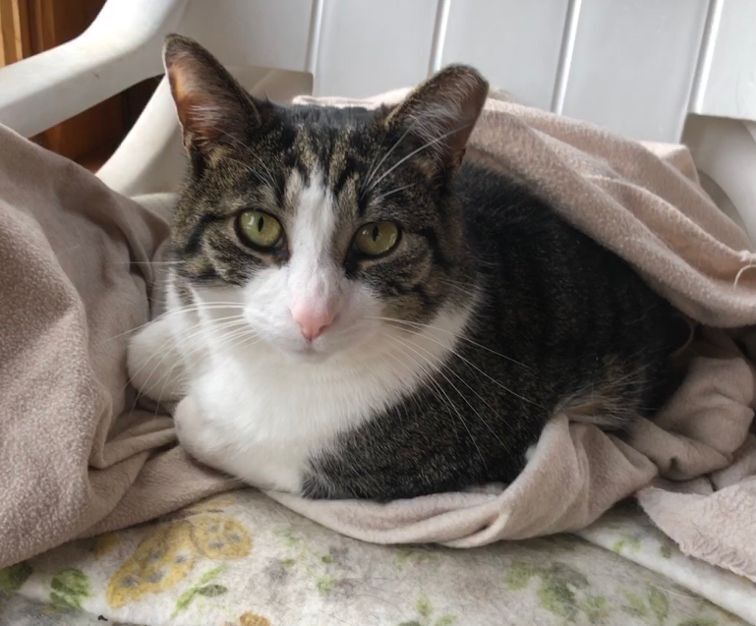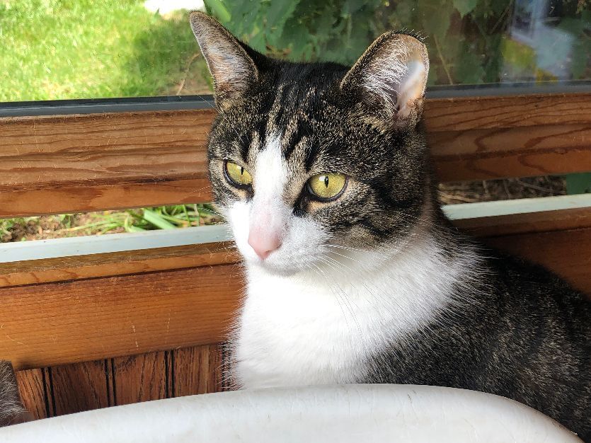 Elliot is an exceptional young adult cat! Not only is he strikingly handsome with gorgeous eyes & charcoal toes, hes smart, affectionate and adventurous! Hes really amazing overall! He loves the other cats and they all seem to look up to him. Elliot likes to watch whats going on in the outside world through the windows, sunbathe, and birdwatch. He lets the other cats snuggle and nap with him. Hes a little bored being stuck in the sunporch and would like to have a home of his own to explore. Hed like to take Clint or one of the other cats with him to a new home. He is friendly & playful with people who he knows. Hes a little bit shy at first and may hide from new people until he knows them. He is very playful, & likes chasing after toy mice & interactive toys! He likes chasing the long fleece toy on the stick and he will pull toys of his water bowl. Hes gotten a bit chunky out of boredom of being stuck in one room but hes still quite playful and wants to explore and play more. Hed enjoy a home and family of his own to expand his world. Hes kind of an old soul and has eyes that seem to be wiser than most! He uses the litterbox faithfully and is a pretty perfect cat! He enjoys playing with interactive cat toys and being petted. All of the kittens seem to love him! He is also interested in dogs but hasnt had any exposure. Elliot is neutered, vaccinated, FeLV/FIV negative & microchipped. We are looking for an indoor home for him. He would be happy to be adopted with one of his friends. Maybe his little buddy (nephew) Clint. That would be good for them to have a loving new home together to explore! Adoption application & home visit required. Indoor only home. No declawing allowed.