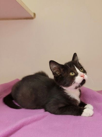 Hi everyone, my name is Santana. Im up for adoption here at Helping Paws Animal Shelter with my siblings. We are fun, happy, sweet, outgoing kittens! We are just looking for our forever homes! If youre interested in adopting, please contact the shelter to schedule an appointment. D.O.B: 5-24-22 Mom: Hanna Siblings: Salem, Slade, Snuffy, Salida