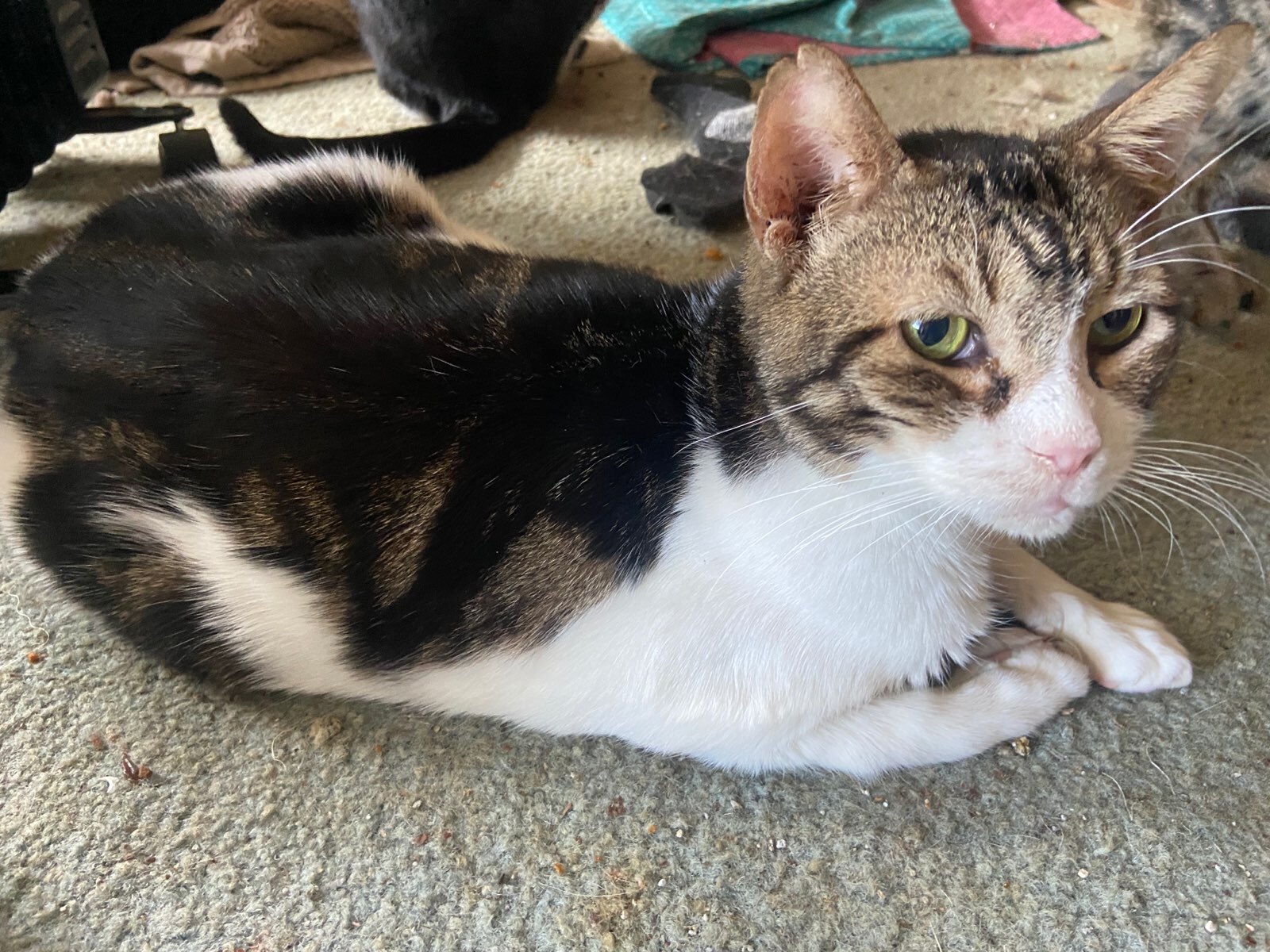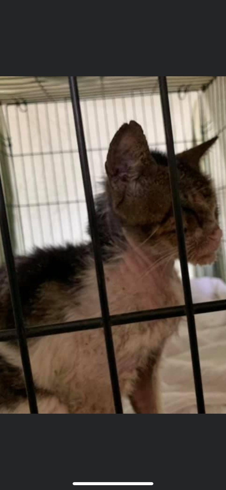Mr. Scabs came to us with a bad case of- you guessed it- scabies! Add in parasites and an upper respiratory infection, this gentleman was in a bad way. A year later and hes a healthy, distinguished sort of fellow! Scabies will take some time to warm up to you, but this old man is all meow and no bite(literally, he has no teeth).