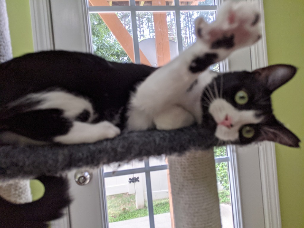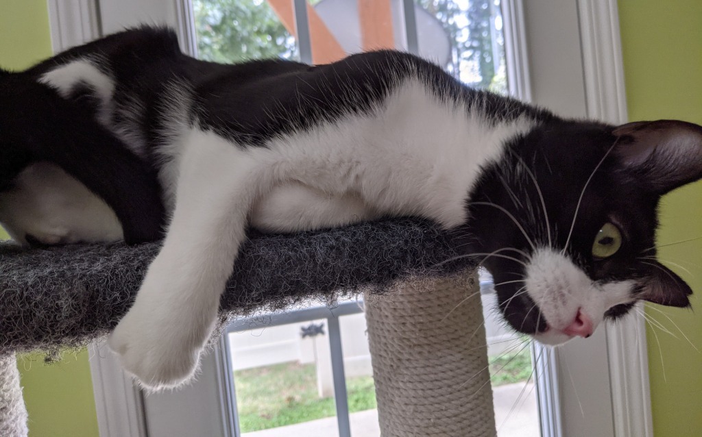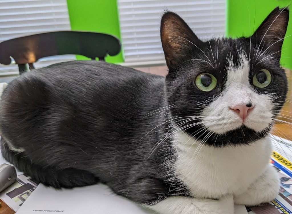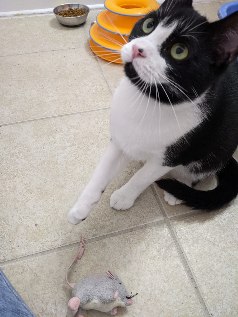 Junior Mint came to Purr Partners as a shy little boy, not used to being around people and other animals. He took immediately to the other foster cats and loves to play with them. When he is held he purrs and purrs, and if he is alone with his foster mom, he wants her attention and will stretch out on the cat tree and reach out to her. He has become efficient with the computer and he especially loves to help his foster mom work. Junior Mint has tested positive for FIV, but that is not an issue. It is NOT contagious to other cats except through deep puncture wounds like those caused in fights by two unneutered males. It is NOT transmitted by using the same food and water bowls, litter boxes or toys, and many of us have FIV cats happily living with non-FIV cats in our own homes. FIV positive cats, with good vet care such as you would give any cat, can live a normal life span. For more information or to apply to adopt please go to: https://www.purrpartners.org/adopt/