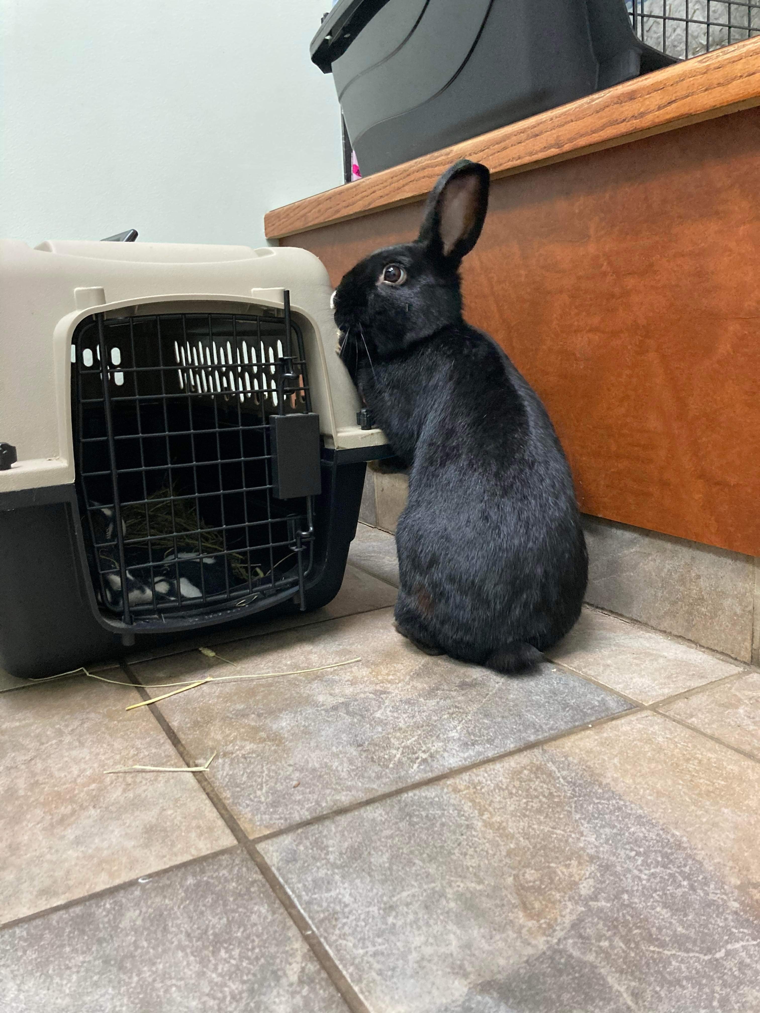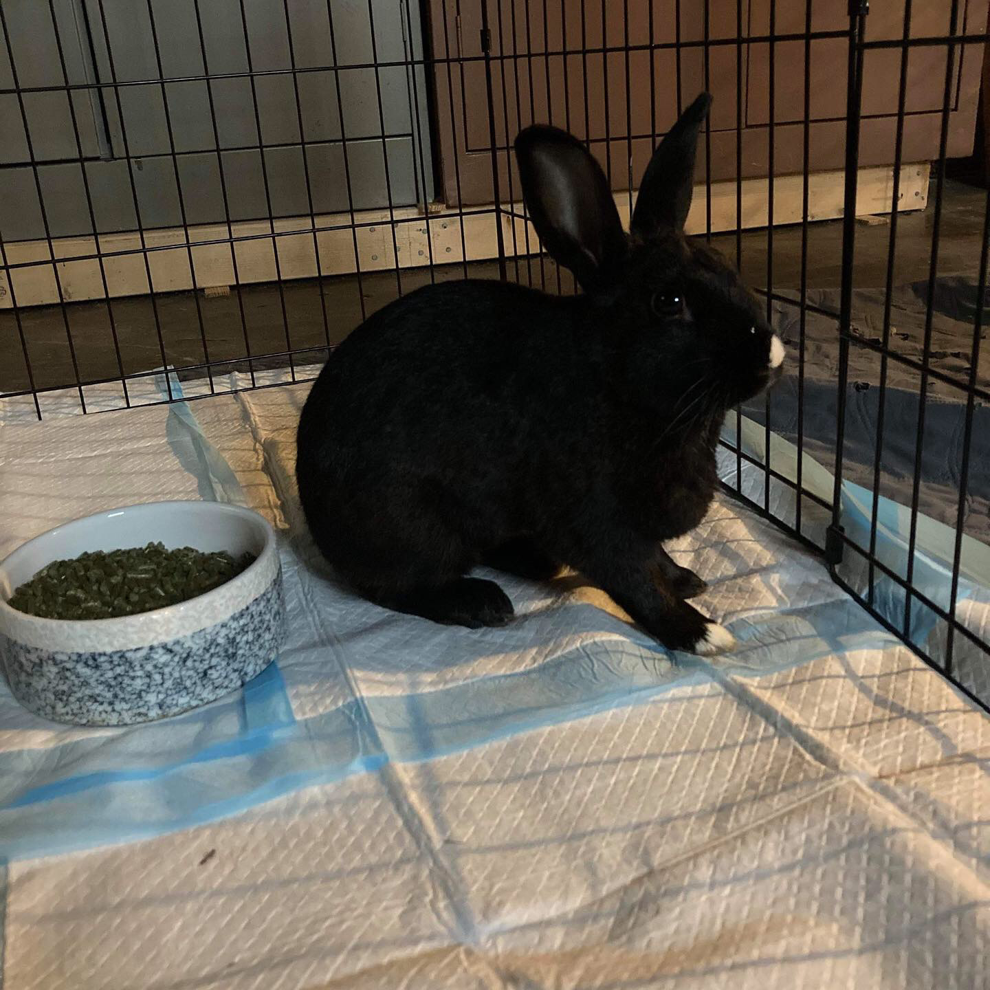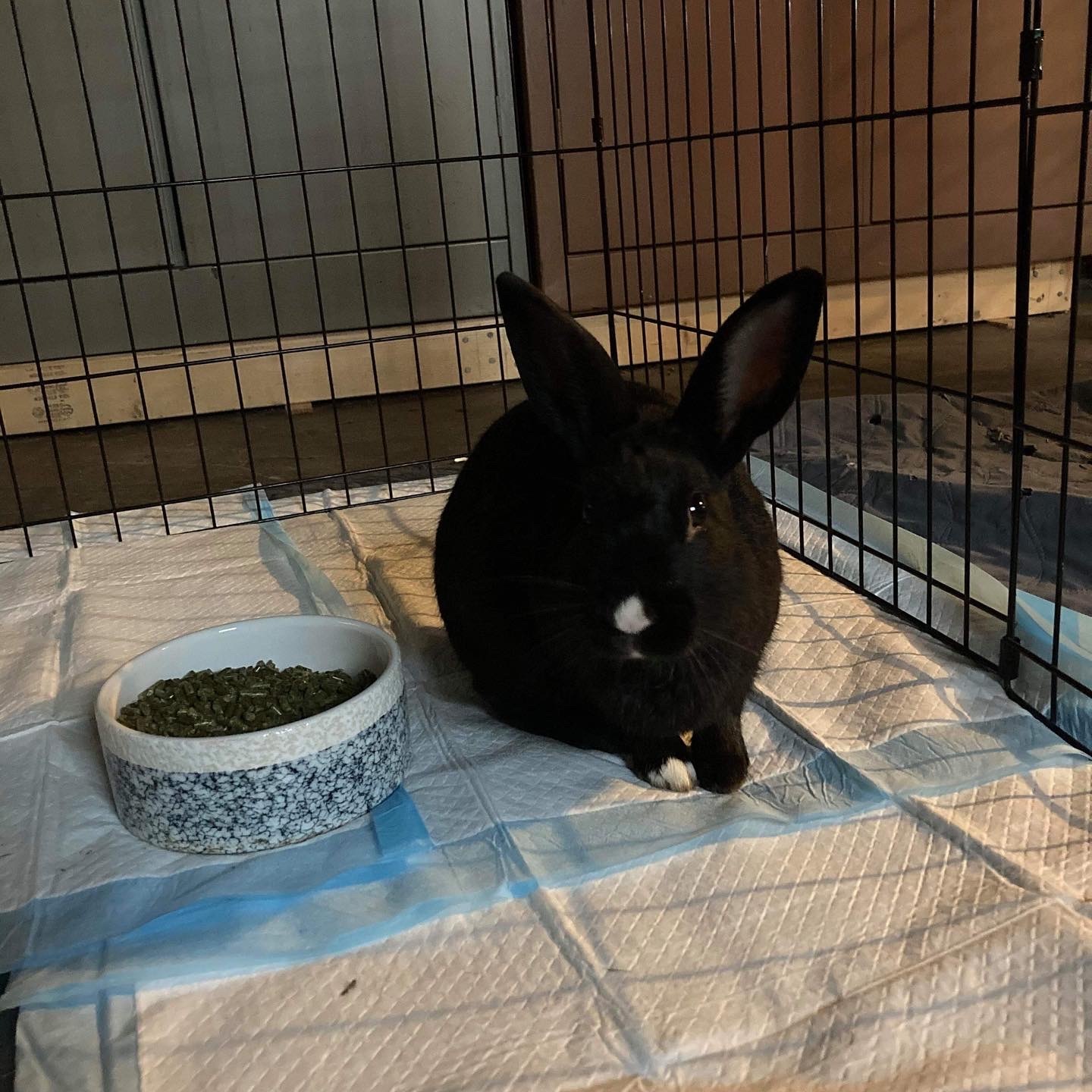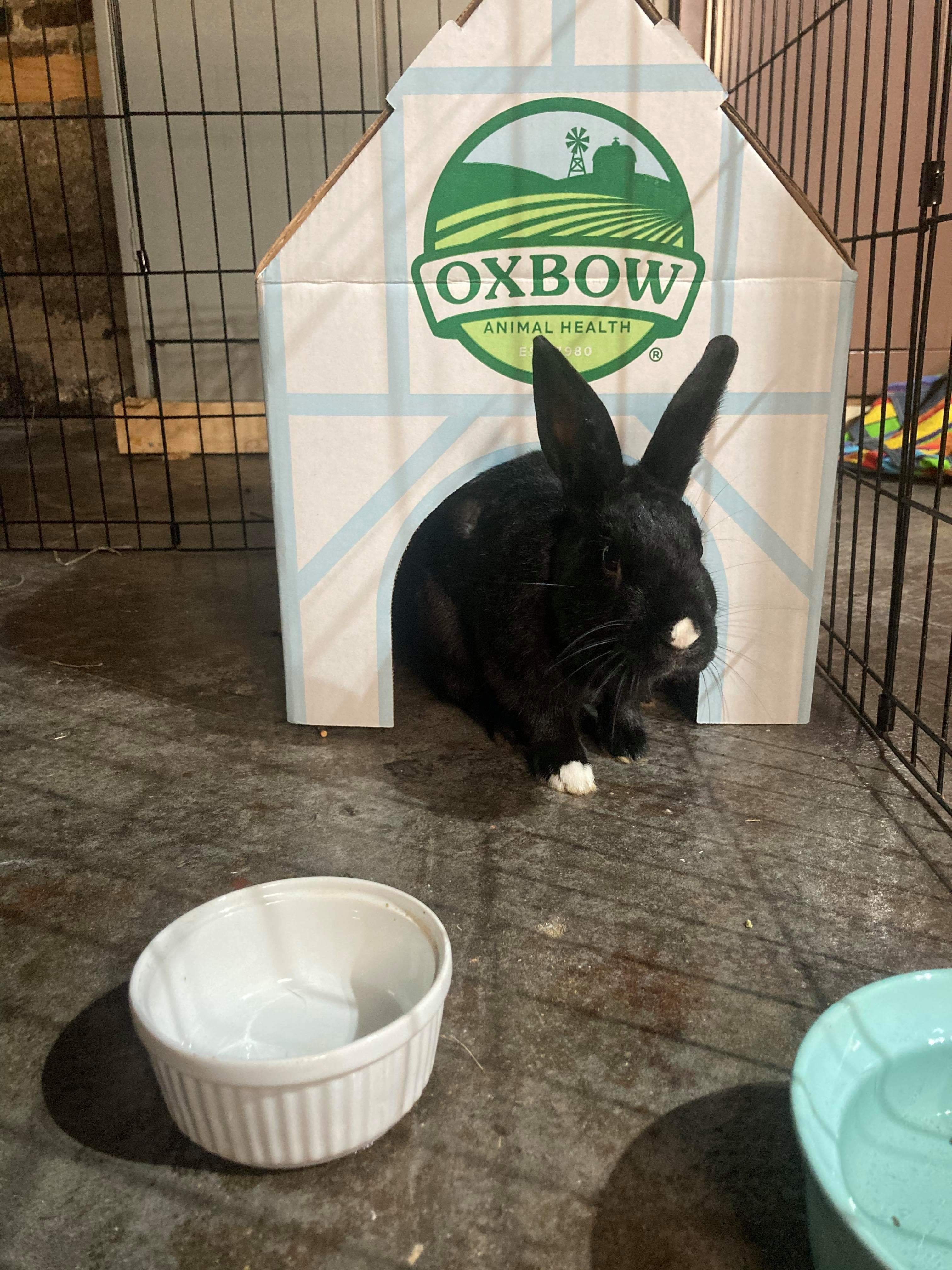 Cute little dude! Very sweet, playful guy. He’s estimated pretty young. Maybe just 12 months old now. Love his white-tipped nose! Barry has been fully vaccinated for RVHD2. He is litter trained and neutered. Preferred adopter should be experienced in rabbit care. Indoor housing only. Adoption fee $125 Online application at http://www.hrschicago.org/adoption-application-form/ Our bunnies appreciate being housed in pens instead of cages where they have space to play and and show their personalities. Pens are available for purchase through us. See an article about pen living here: http://www.hrschicago.org/pen-living-for-rabbits/ *indoor housing only *experienced rabbit caretakers *only will adopt out to homes that will use Xpens (rather than cages) or free roam in a room