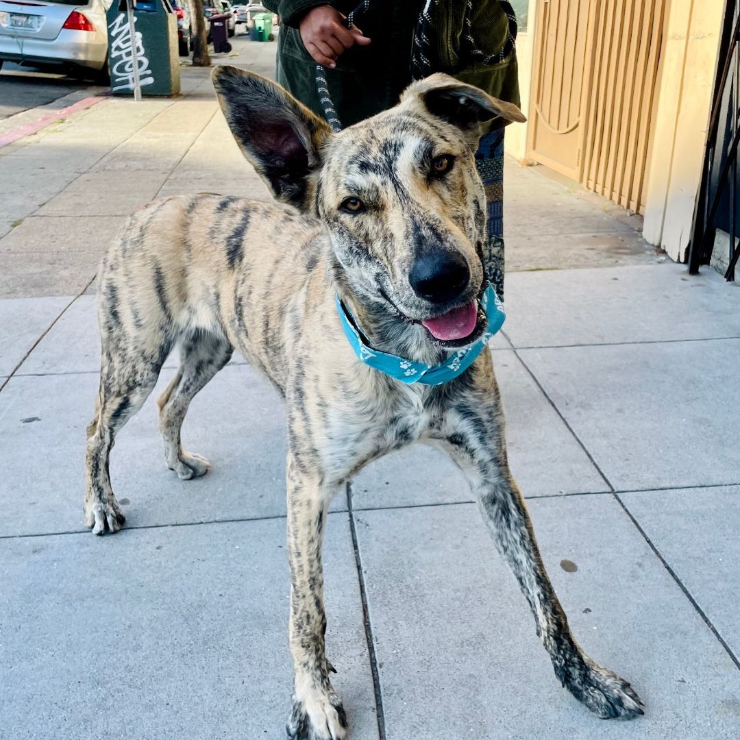 AT THE CITY OF OAKLAND ANIMAL SHELTER in Oakland, CA: Meet Jenga! The shelter staff have this youngster listed as a young male Dutch Shepherd mix. Interesting markings on this pup, wouldnt you say? That bright amber colored eyes is what caught my attention. An owner who is willing to do the proper training with this fellow would most likely end up with an awesome dog. Those eyes of his are focused and ready to learn. Here is what the staff posted on the Oakland Animal Shelter website yet about Jenga. You can also get more information when contacting the shelter staff refer to his ID# 63999. I am in a foster home and not at the shelter. If you are interested in adopting, submit an adoption questionnaire by email. Jenga is being described as a wonderfully wild and bouncy pup. Hes a combination of both shy and playful, and is a loving puppy ready to find his family. Like all puppies will, hes in a stage of "mouthiness" and needs appropriate things to chew on (like toys!) and reminders of what not to chew (like shoes or toes!). Jenga will thrive with an active family, he is patient and calm during car rides, great on leash, and responds very well when called. If you can nurture this super happy pup with positive reinforcement training and plenty of adventures, submit an application to meet him! To adopt, come on by during our open adoption hours which are Thursdays 12 to 7pm, and Fridays/Saturdays/Sundays from 12 to 3pm, no appointment needed. Alternatively you may submit a completed adoption questionnaire via email. Note that dogs listed as “I am in a foster home” are generally not at the shelter and will require emailing in your adoption questionnaire. - Oakland Animal Shelter - 1101 29th Avenue, Oakland, CA 94601 - Phone: 510.535.5602 - Adoption Hours: Thu 12-7pm, Fri 12-3pm Sat 12-3pm, Sun 12-3pm - website: www.OaklandAnimalServices.org ---------------------------------------- Jenga is a courtesy posting on our website for the City of Oakland Animal shelter.