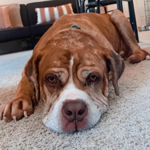 Doiji has a problem and we hope you can help! He keeps getting grass stuck in his teeth. But we have a solution to help him! Become his foster or adoptive family and you can be his official grass remover! Our sweet Doiji is calm, laid back, and as sweet as they come. He was with us a few years ago, went missing, and not claimed back so here we go again to find him a home that will last a lifetime. He is reported to be good with cats and seems ok with dogs he has met but we have heard he likes to be the one and only dog in the home. This big guy (90 lbs) is just one big Bubba Hunk of Love! 4 yrs, H U N K A L I C I O U S