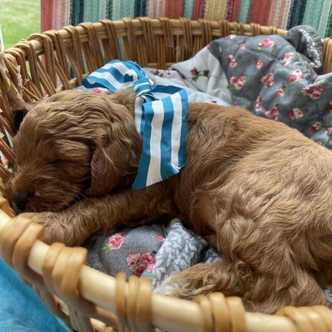 Bud(Blue) is the calmest, cuddliest puppy, he gets scared with loud noises. Hes 6 weeks old, will be ready to be adopted on 10/01/22. They are being fostered in Chester County, PA. Must be willing to drive with all family members and any other dogs to meet them before adoption,& pick up when old enough. They have been dewormed,& will have first vaccines, microchipped,& health checks at the vet before adoption. Adoption fee is $650, and in addition there is a $250 spay/neuter deposit that will be refunded per the contract once altered.