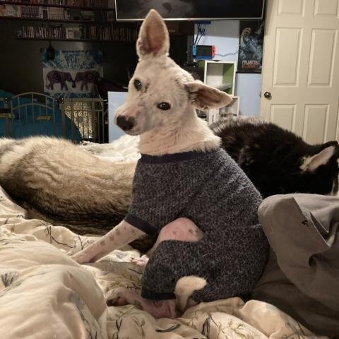 Link is a little nervous/uncertain, but so loving and sweet as he gets more comfortable. He has done well with dogs and cats, but can get possessive of food and toys sometimes. He has never been possessive or aggressive with people just other animals. He is not a fan of being on a leash, so a fenced in yard is recommended. He is housetrained and knows how to use a doggy door. The first couple of weeks he would run from me and spend all of his time outside. He would only come inside when it was bedtime and sleep cuddled with me. Now he remains inside all day and enjoys snuggling under the covers as well as above them. Still Working on growing his hair back but still cute as a button. He needs a patient adopter who will work with him through his uncertainties and keep him safe. He does not like car rides and requires medication and a crate for car trips. This still doesnt calm him completely,but it does help a lot. So minimal driving is preferred, yearly vet visits are Links preferred one and only car ride.