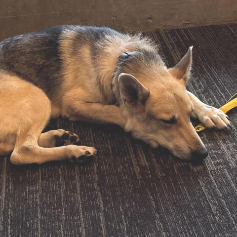 If you would like to have a buddy wholl go with you to football tailgate parties, come meet Benjamin Button! But hey, if youd rather he just snoozes next to you while you read a book and watch TV, hell love doing that, too. This gentle, outgoing boy always wants to be with his foster mom and especially loves being petted and snuggling his head on her lap. He enjoys going with her to hang out with friends, to those tailgate parties and wherever she wants to go. Hes also very excited to go on short neighborhood walks. Hes interested and curious when he sees other dogs, pulling just slightly on his leash and gentle and friendly when meeting them. Hes also excited to meet new people, and very friendly with them, too. At home, Benjamin is happy to lounge and take naps near his foster and does well free roaming when shes away. Hes very well-behaved and always wants to please her. And he is house-trained. Benjamin is a very easygoing boy who will do well in many households. He does not need a lot of activity, just those short walks he enjoys. And hes very well-behaved, so does not require training. He should live nicely with other dogs. Come meet this adorable boy!