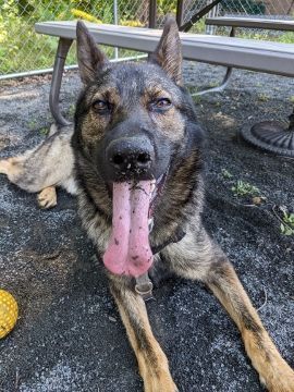 Meet Zeke! Zeke is a 2 year old German Shepard dog. Based on his size, stature and disposition we believe he is a pure bred pup. Zeke is all things Shepherd. He is a regal guy whose favorite thing to do is to play fetch. He has the game down and will politely exchange one ball for another. Don’t turn your back, however, or you may find he has stockpiled all the balls on his side of the field. Zeke should go to a home where his people have the time and desire to keep him mentally and physically active. Any children in the home should be of the larger variety so they do not get knocked down! If you bring Zeke into your life, he will reward you with his everlasting love and affection. If you think Zeke is the right dog for you, please email Stef at stefanie.d@poainc.org.