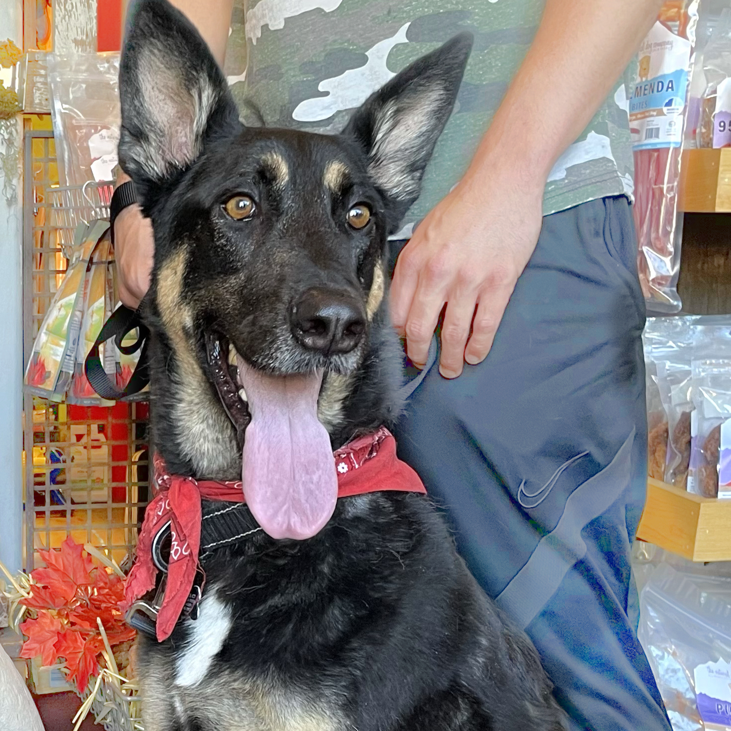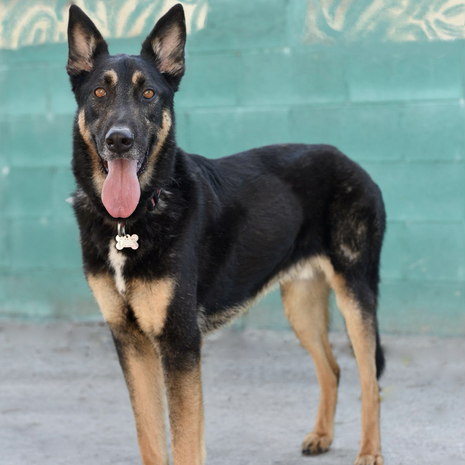 Rocky is a gorgeous 3-4 yr old, approx 60 lb, German Shepherd who was surrendered when his family could no longer care for him. He lived with a large Great Dane/Lab mix who has a submissive personality and socially good with other dogs. They had good brotherhood but do not need to be adopted together, and proves he would be fine living with another large/larger dog with the right personality. Rocky would do well in a home who has some dog or shep experience and can continue to offer him structure and leadership that he is so great with. He walks very well on leash with a good leader and looks up to check with his person while walking. While Rocky enjoys his walks, he is also happy to kick back and hang out with his people, or hang out in a secure yard - running around and chasing balls. A single person, retiree, a couple or people with kids over 12 yrs in the home would suit him well. Please note that we are currently set up to adopt within the Los Angeles county area.