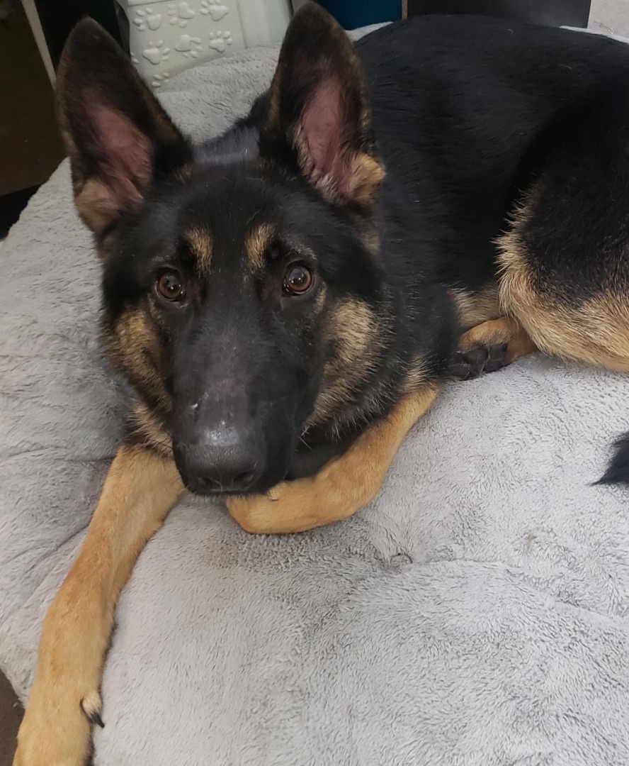 Name: Bucket Breed: German Shepherd Age: Young Adult Gender: Male Size: Large Bucket is a goofy name for a goofy pup! This German Shepherd is gorgeous, outgoing, social, and just a little bit naughty. Well, hes not naughty so much as he has never been taught manners or how to play appropriately. Bucket loves people, cannot get enough of people, but his love often is shown in jumping all over, bouncing off, and mouthing. This was probably adorable when he was a little puppy and his owners never corrected it and even encouraged it. But from a 70 lb and growing dog, its more painful than adorable. Bucket is not at all mean or aggressive, he is untrained and it shows. The progress he has made in learning appropriate interactions in even a week is outstanding and we know he will be an incredible dog for someone who puts the time into training him. He already has an exceptional temperament and his potential is sky high. Bucket LOVES the water and the kiddie pools, loves toys, and is learning that fetch is way more fun when you bring the ball back to be thrown again. He is very friendly with other dogs but very overbearing so will need a home who will monitor interactions and separate to make sure the other dog is not overwhelmed by him. He is not good with cats. Due to his mouthy behavior he should not be placed with kids. He is doing well on his housetraining and cratetraining with a schedule and repetition. If you have the patience, time, and experience to put some training in, Bucket is going to be amazing. As with all dogs under 2, he is required to be signed up for a basic training class prior to adoption to set everyone up for success ***You can see more photos and videos (as we get them from our fosters) on our instagram page @headinghomek9rescuemn*** Requirements: Training sign up, no cats, no young kids Adoption Fee: $500 + tax. This includes neuter/spay, current vaccinations as age appropriate, heartworm/tick testing if appropriate, deworming, microchip, and current preventatives Interested in adopting? Fill out a pre-adopt application here: https://form.jotform.com/203104997748162 The application is the first step to get done if you are interested in meeting him. Questions? Email laurahhk9@gmail.com
