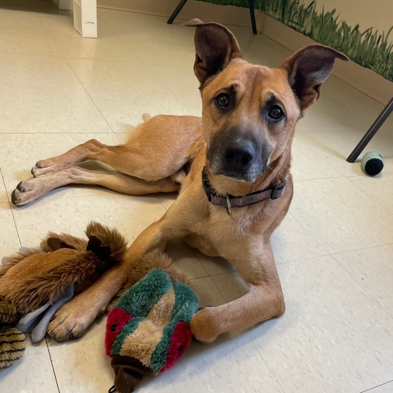 Donner arrived to us in the winter as a transfer from another shelter. We believe Donner is part German Shepherd and part Goofy-Goober. This goofball is around 2 years old with an estimated birthday is December 2019, and he is around 50 pounds, but he is on the thinner side, and we are trying to put some more weight on his bones. Donner is a love bug with lots of energy! He would thrive in an active home, with a large fenced in yard where he will have lots of room to run and play, because thats his favorite thing to do! Donner is also very playful and loves to play with toys, especially squeaky ones! He does not like to share his toys however, so it is best to leave him be while playing. When introducing Donner to other dogs, he decided he was not a fan of their shenanigans and would thrive in a home as the only dog. When he took a visit into our kitty room, he loved meeting the kittens and was very friendly while interacting with them, and he avoided the kitties that werent too sure about him. Since Donner is a wild man with lots of energy, and does not like to share his things, we dont think hed fit into a family with small kiddos, but rather older ones that have dog experience! Donner is a sweetheart who tries so hard to be the best boy ever! Our adoption fees vary, Shelter Dogs are $180, Prison Dogs are $250, Puppies are $300, and Popular Pure-Breeds are $400. The price includes: a Home Again Microchip, set of shots, de-worming, heartworm testing (if old enough), spay or neuter, and a 1 year rabies shot (if old enough). All dogs adopted must leave with a county license at an additional cost of $17, this fee is cash only. Adoption fees can be done using credit card or cash. If you are interested in this dog, please call the shelter at 614-879-8368 or fill out an online application at www.hsmcohio.org