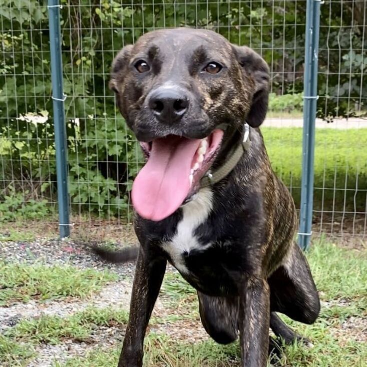 Mousse, aside from having a pretty cool name, is a pretty cool dude! Will he make your hair look better - probably not. Will he whip up a smooth and delicious dessert for you - doubtful. But he would love to be your play buddy, partner and bestie! He is very smart, playful and engaging with people. You can see for yourself that he is a looker and quite photogenic! He is a German Shorthaired Pointer mix with a beautiful, shiny brindle coat and weighs about 51 pounds. He is 11 months old and prefers a home without small dogs. Since he is housetrained, neutered, and up-to-date on vaccinations, he asked us to pass along the message that he is looking for that perfect someone to call his very own! Interested in adopting? Please go on our website, triadspca.org and submit an application, or call us at 336-375-3222!