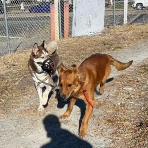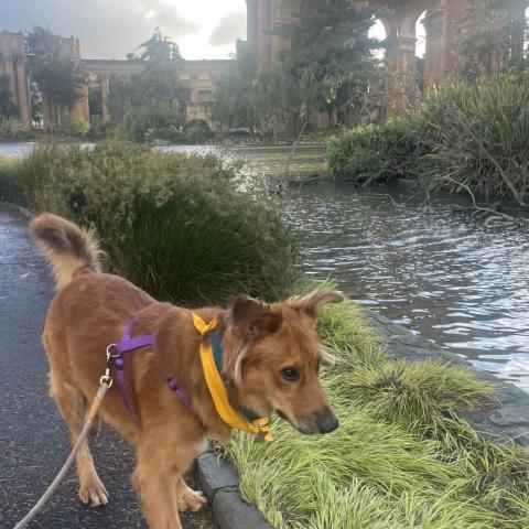 This sweet and high-energy boy gives nothing but love, cuddles, and the occasional body roll into anyone whos willing to rub his belly. Hes very friendly with other dogs and humans, and takes treats gently. We are looking for an adopter with a yard who will spend lots of time out there with him-playing and rolling in the grass (one of Harveys fave activities). Harvey is an excellent couch potato companion whod love nothing more than to jump on the couch and cuddle. With that said, he is a high-energy puppy who needs a lot of playtime. Given his size and inclination to body roll onto humans/dogs, Harvey is recommended for households with older children. Harvey is not comfortable around bicycles, and likely afraid of other wheeled modes of transport/exercise, so need to use caution and provide slow and steady introductions to such things and avoid trails where bikes are allowed. *Harvey is house trained! (Yay!) *He knows his basic commands (sit, down) *He is in the process of crate training and learning leash manners. *Harvey doesnt bark when people approach front door. Harveys adoption comes with a crate, a bed, a harness, a collar, and a Kong. Come meet this adorable boy today at our Adoption Center.