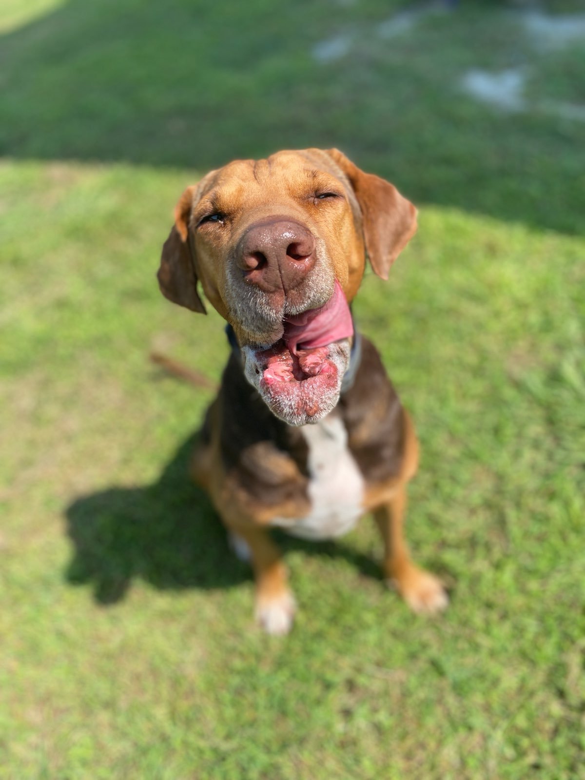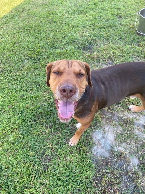 LEONIDAS (LEO) - 6-7 years old, 70 pounds, house trained, good with kids, cats, dogs, can jump a 6 foot fence, very affectionate. Leo and his brother, Poe, landed behind bars after getting into an altercation at their home. They had lived together for years prior but something happened that day and the rest is history. Leo is a funny, sweet and easy going boy who loves to run, walk and play. He is drawn to other animals and children, whom we are told he is great with! His previous owner actually stated Leo was the nicest dog he had ever had. Leo is able to jump a 6 foot privacy fence so supervision in the yard will be required. Leos sharpei face and retriever body make for an interesting mix. Call us at 757-385-4444 to make an appointment to meet him!