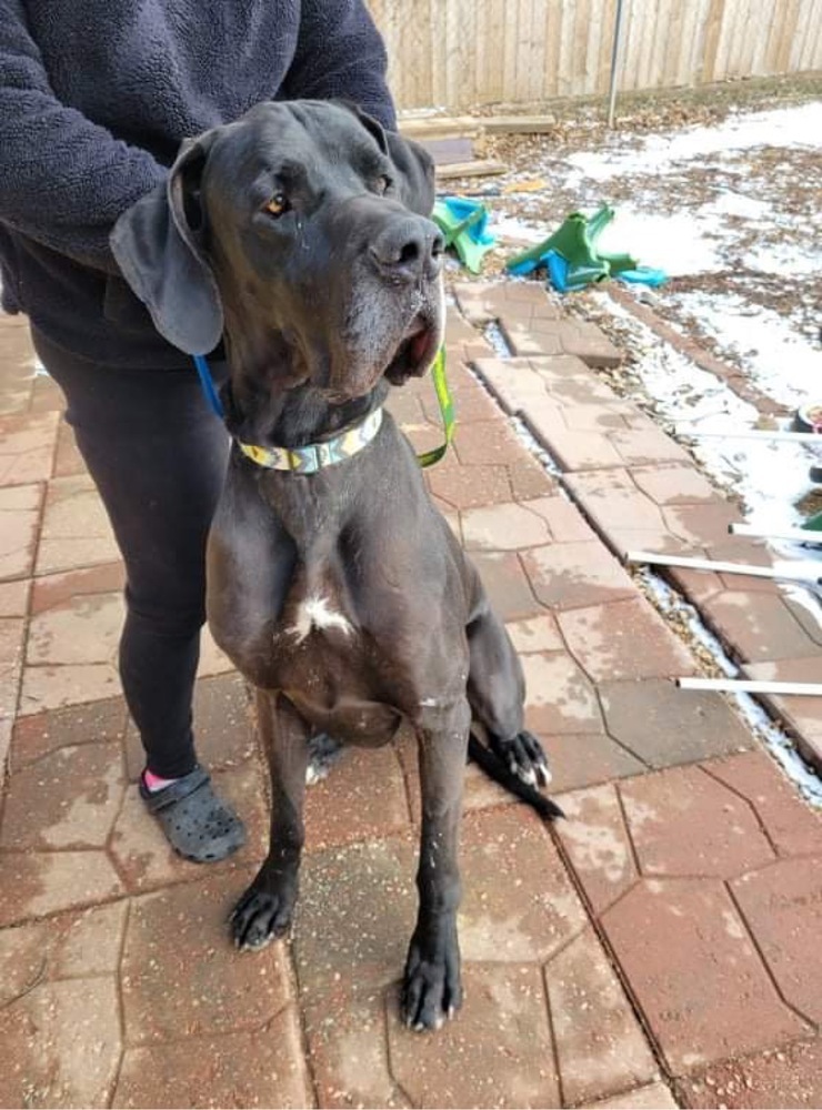 Name: Jango Breed: Great Dane Gender: Male Color: Black with White chest Age: 3 yrs Weight: Intake Date: 2/13/21 Special Needs: Requires owner with breed experiences. Good with Cats? Yes Good with all dogs? Recommend: Only dog home Good with all kids? Yes older 15+ Foster Location: Albany, IL If you would like to send a gift to Jango check out his Amazon wish list https://a.co/iS22Tdi Jango is super sweet and loves to lounge on the couch! He is very calm and relaxed and would appreciate a family who is the same. He tends to get nervous if there is a lot of excitement around. Jango also needs a family that understands he didnt always have a lot of food or toys, so sometimes sharing with his fur siblings is difficult for him. Jango will need to continue his training with his new family. He needs a family that has experience with the breed and patience to grow a strong relationship. Honestly he just wants to hang out around his foster family and watch tv. If you want a giant lap dog to lay around and snuggle, Jango is the guy for you! Meet and greets can be scheduled with approved adopters. To apply to adopt from XL Canine Rescue, Ltd just click on the adoption application link on the website. All dogs adopted from XL Canine Rescue are all age appropriate vetted and microchipped. Puppies are on a spayed or neutered contract. For more information about us and our dogs, please visit www.xlcaninerescue.org. Thank you.