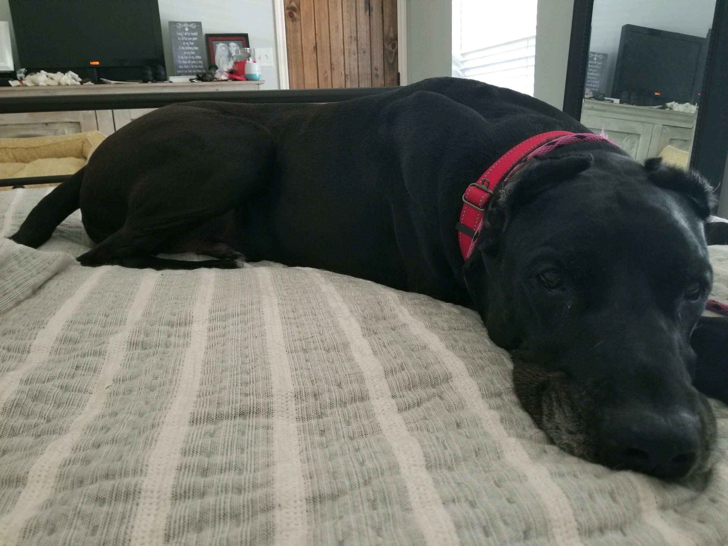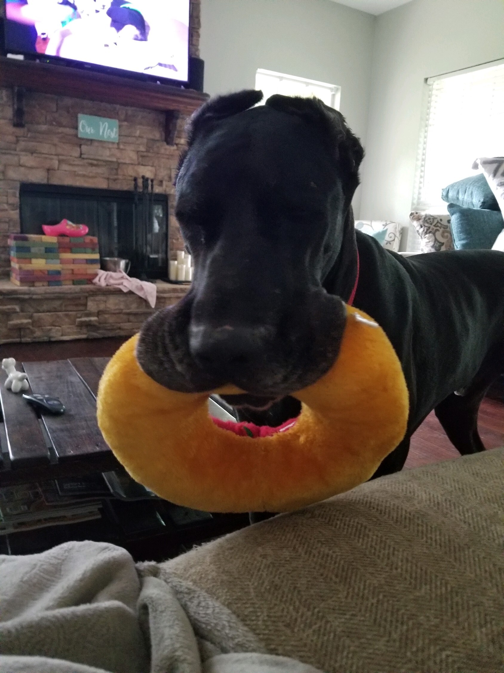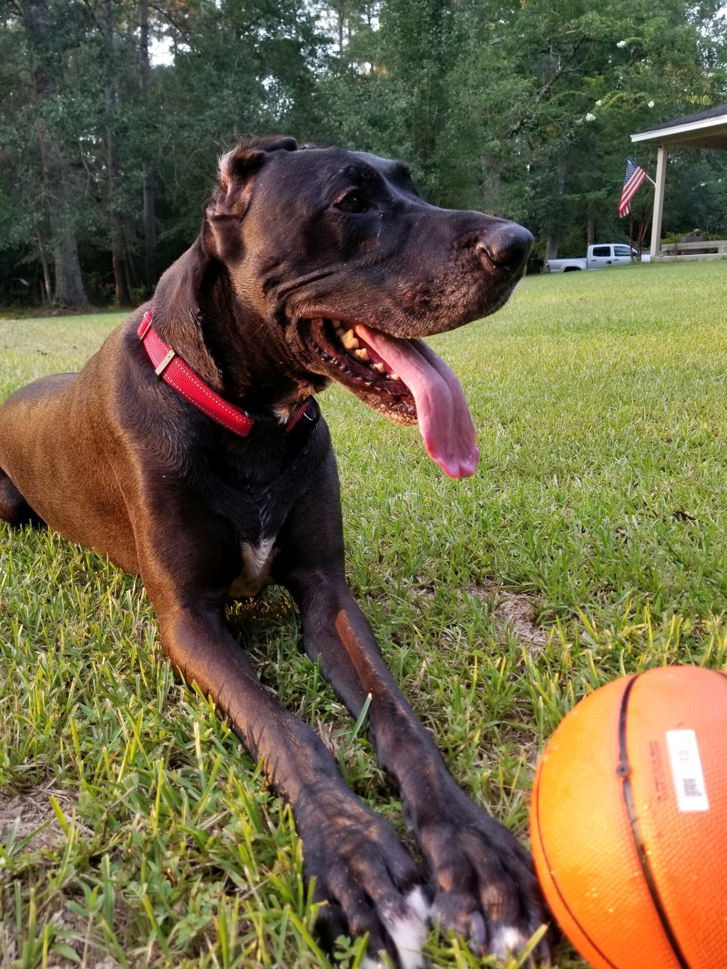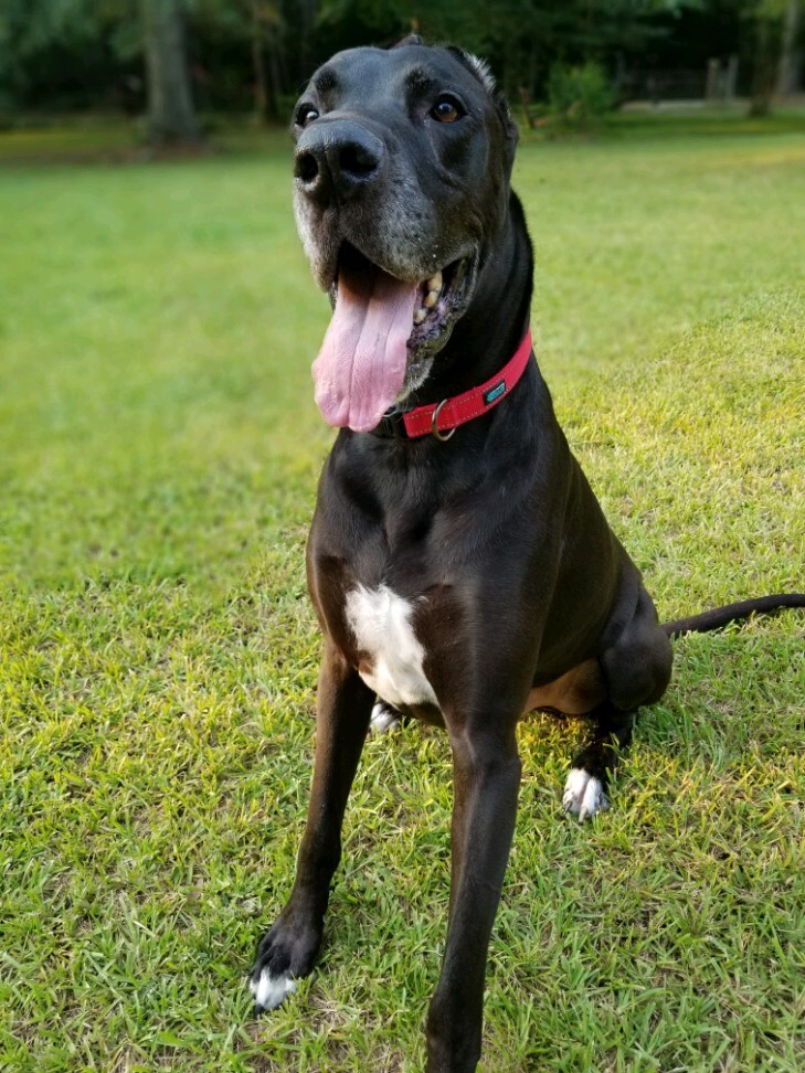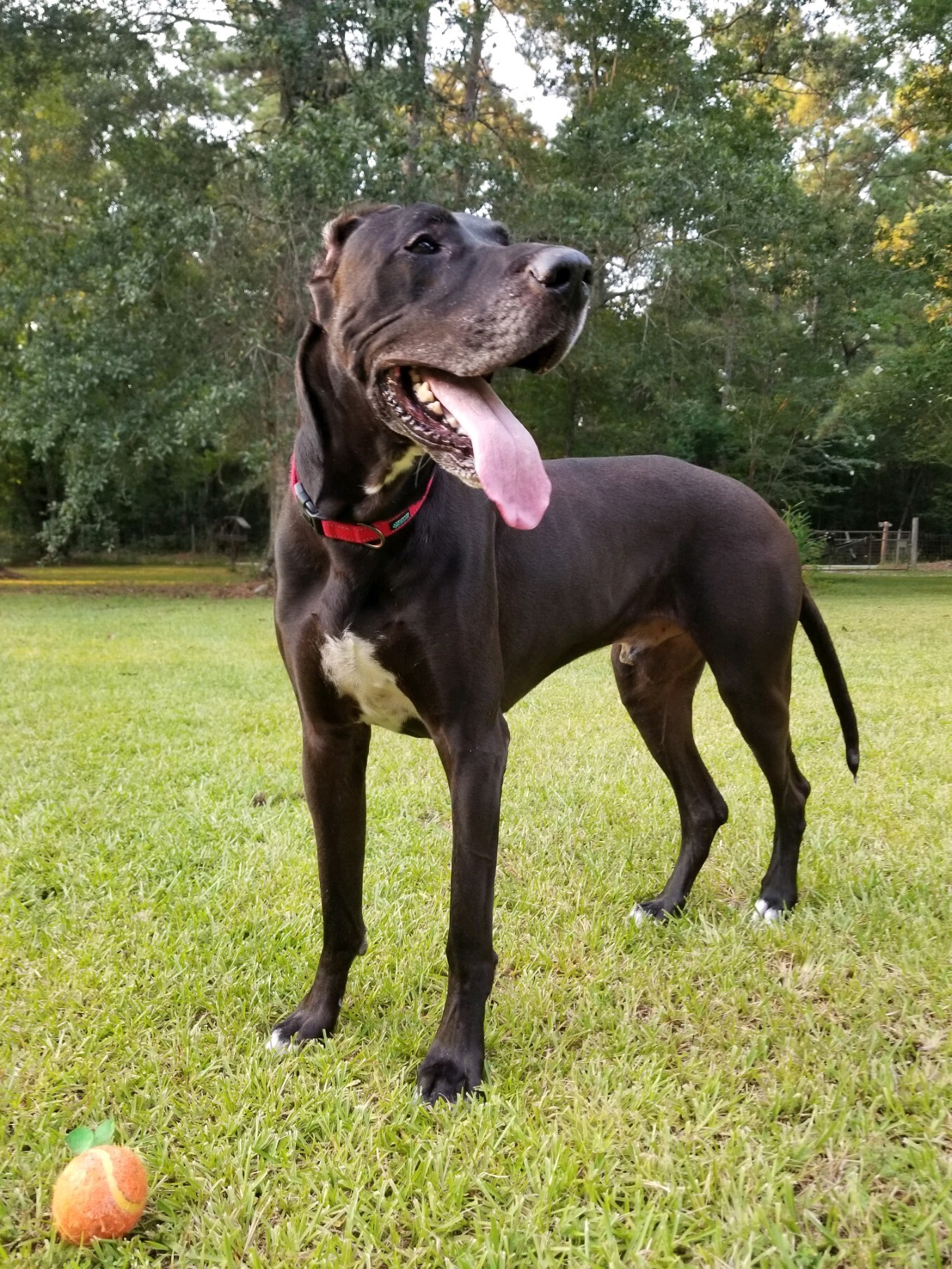 Kono is very polite inside and is eager to please. He is really a nice balance of typical couch potato Dane and an energetic athletic guy. He can snooze for hours but also loves to run and play outside. He loves playing with his stuffed "babies" inside and does not tear them up. He is a very easy guy to be around. He likes to be near his humans but he isnt pushy or overly needy. Unlike a lot of dogs he seems to love and prefer men. Kono would thrive in a home with a man who wants to be his pal. He would do very well with older kiddos to keep him busy and throw the ball, but he can get excited and jump at you with the ball so he would probably accidentally knock over little kids. We are unsure about other dogs and his current foster keeps him separated from their dogs with no indication of wanting to mingle. He does well in his crate, he goes right in with no problem. He will bark a lot if we are still around or doing something with the other dogs but he does quiet down rather quickly. He is a wonderful boy who needs a family who understands boundaries, structure, and then love.. ADOPTION CONTRIBUTION FEE: $324.75 NOTE: All adoptions are only in the greater Houston, TX area. Please Note: WE ARE NOT A SHELTER- ALL DANES ARE IN FOSTER HOMES In many cases, the cost of vetting services is greater than the adoption contribution. The adoption contributions help defray the costs of vetting services, but rarely, if ever, cover all expenses. Additional donations are welcomed and appreciated. Please consider making a donation to help offset medical expenses. To do so, please visit our website at www.saveadane.org GDRST will have the following services completed as part of the adoption process. Each animal will be spayed or neutered, fully vaccinated, heartworm tested, heartworm treated if applicable, fecal tested, de-wormed, microhcipped, and administered heartgard. Please note GDRST is an all-volunteer, run by individuals with full time careers. In order to meet with a Dane that you are interested in,you will need to complete an application. After receiving your application, a volunteer will verify with your vet the care on your current or previous animals and then contact you to set up a home eval and to discuss which Dane may be a match for you. Great Dane Rescue of Southeast Texas 16516 El Camino Real #402 Houston, TX 77062-5723 Information E-mail: info@saveadane.org Adoption E-mail: adoption@saveadane.org Website www.saveadane.org Connecting Great Danes to Great People Great Dane Rescue of Southeast Texas