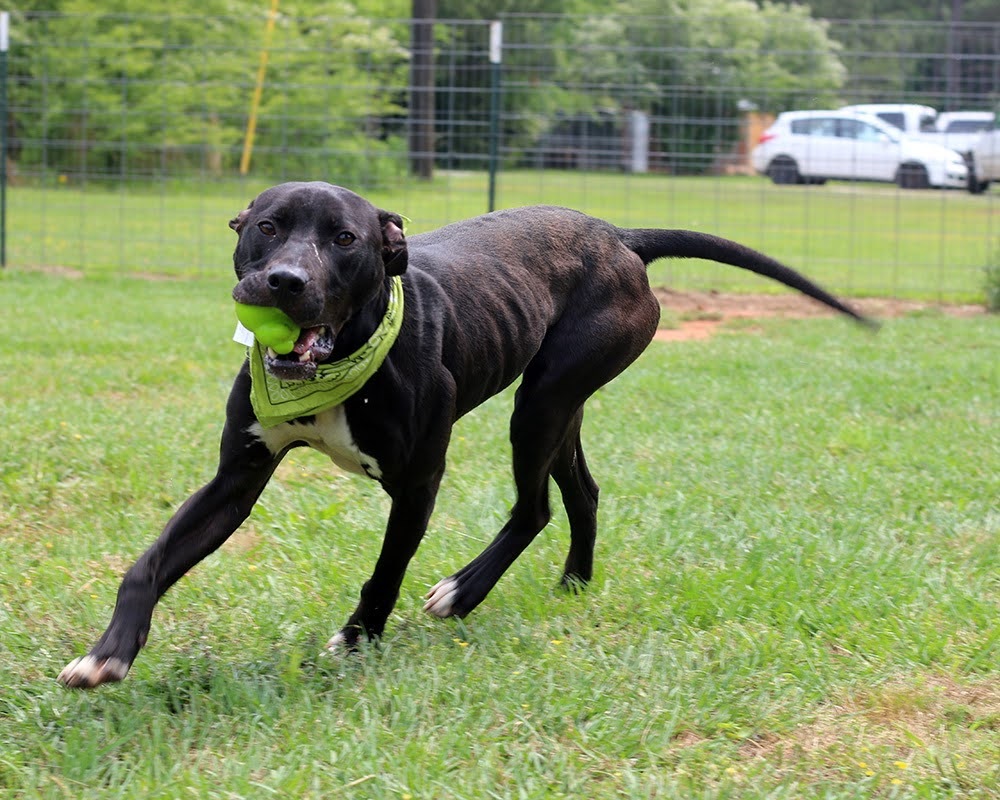 Name: Ranger Breed: Great Dane Mix Age: Approx. 3 Years as of May 2022 Sex: Male Weight: 69 lbs and gaining Good with Dogs: Yes Good with Cats: No Good with Kids: Yes Ranger came to us as a walking skeleton after our founder discovered him on the run near her home in a county that has no animal control. Ranger is a great boy that absolutely LOVES toys and is a good boy about them. He will tell you all about his day and does so with a tail wag. He is a very sunny boy and is rapidly becoming a staff favorite here. He is quite gentle. He is an absolute HOOT to watch and play with in the play yard and his smile is infectious. ---- Peach County Animal Rescue is a rescue located in Fort Valley, GA. Our adoption fees range from $250-350+. Although our rescue dogs share a common bond with one another, no rescue story is the same (even when similar). Vetting costs vary depending on their health conditions. All of our dogs are fully vetted: up-to-date on annual shots, spayed/neutered and microchipped with a lifetime registration. We look forward to hearing from you! If you would like to send in an application for this dog, please use the link below! https://peachcountyanimalrescueandrehabilitation.org/apply-now-2/