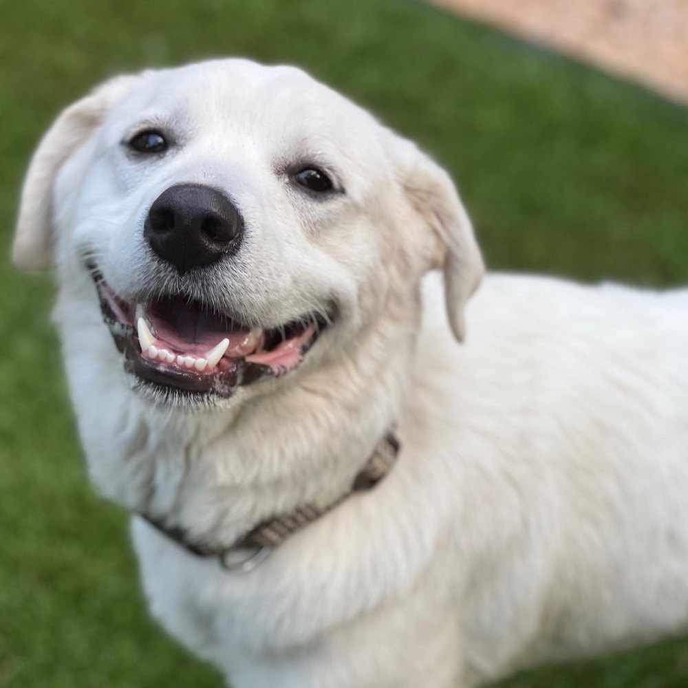 Meet Allister! This one year old lab/Pyrenees mix is celebrating his freedom and hes looking for a new BFF to join him in all the fun! You see, poor Allister spent the first year of his life hooked up to an outside runner for about 20 hrs a day. His owner would hook him out at about 3 am when they went to work and not bring him back inside until midnight! When they finally realized that is no life for a dog, they tried giving him away on Facebook. Thankfully one of our RMG adopters saw the post and snatched him up quick before he could get into the wrong hands! Allister is a super handsome, super loving boy who gets along great with pretty much everyone (although he hasnt met any cats yet). He is still quite young, though, and having spent most of his life tethered outside by himself he has a lot of energy and missed out on the basic puppy manners training he should have gotten. Allister will make an amazing addition to an active family who will commit to teaching him how to behave nicely - hes treat driven and aims to please so he should make an excellent student! Allister also needs another energetic playful dog in the home to both help burn some of that energy and teach him some of the lessons he can only learn from another dog. Interested in joining Allister in his freedom celebration?? Email adrienne@rescuemega.org or fill out an adoption application on our website - www.rmgdogs.org