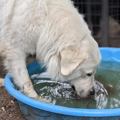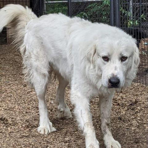 Mufasa is a 1yr old 99pd Pyrenees who is dog and cat friendly. Hes a Very sweet laid back typical pry boy! He would make a great addition to any family. Update: He is fantastic gentle boy outside but in the home hes protective of the family and has food Guarding issues love dogs, cats, kids but should be older children and fed separately from other dogs. He is housetrained