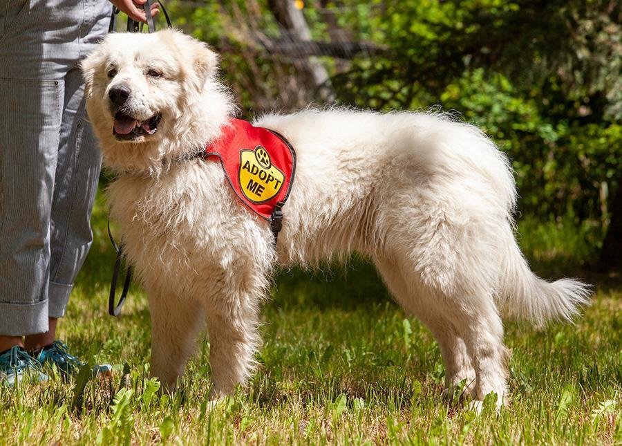 You can fill out an adoption application online on our official website.Father of four pups brought to us from the Helena area by the son of the man who owned them who is deceased. Very nice dog who loves people and attention. As far as we know he has always lived outdoors but he is smart and very trainable. Mom Betty and dad BooBoo patrolled goats & horses on a hobby farm and kept away coyotes. They are good around kids