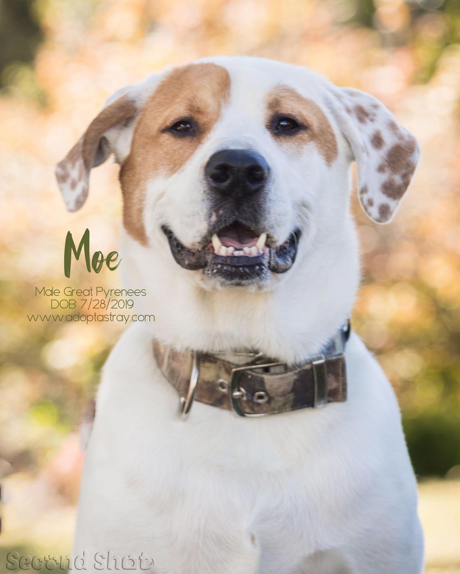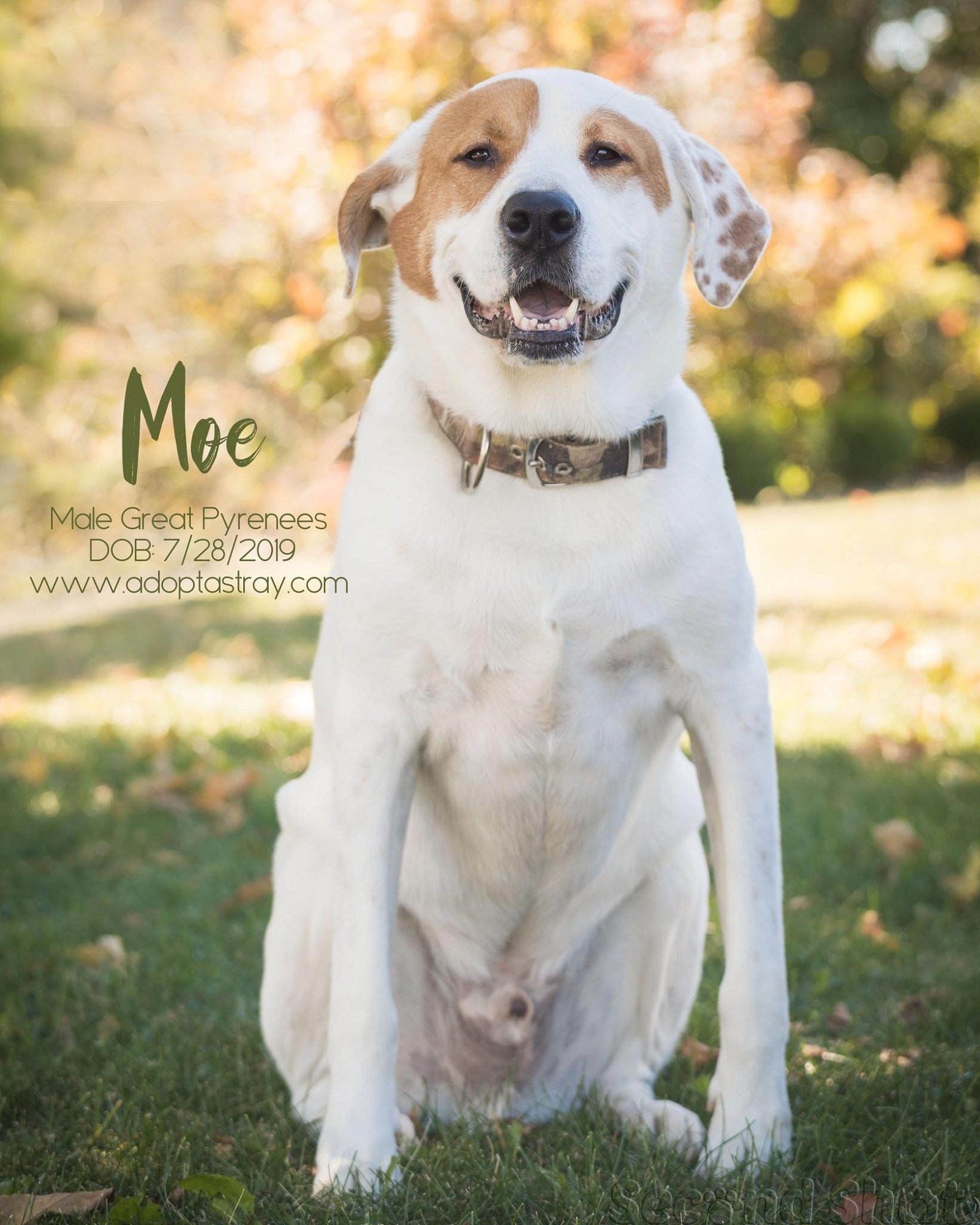 Hi! Im Moe, here are some things about me: -I know the name Bromley -Great Pyr mix -100 lbs -3 years old -No kids please -Cats unknown -Great with other dogs -Resource guards, will nip if you try to take something from him or try to grab his food -Has been through professional training -Does have anxiety, currently takes trazadone -Would love a yard and room to roam! www.adoptastray.com Stray Animal Adoption Program
