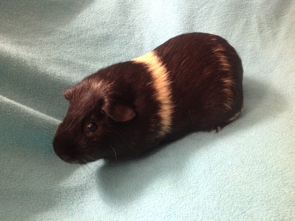 Meet Kyle (black with cream band around middle) with Gainesville Rabbit Rescue. He is an American Guinea Pig born approx Oct 2020. He came in with Stan and Marvin from Hernando County on 1/8/2022.