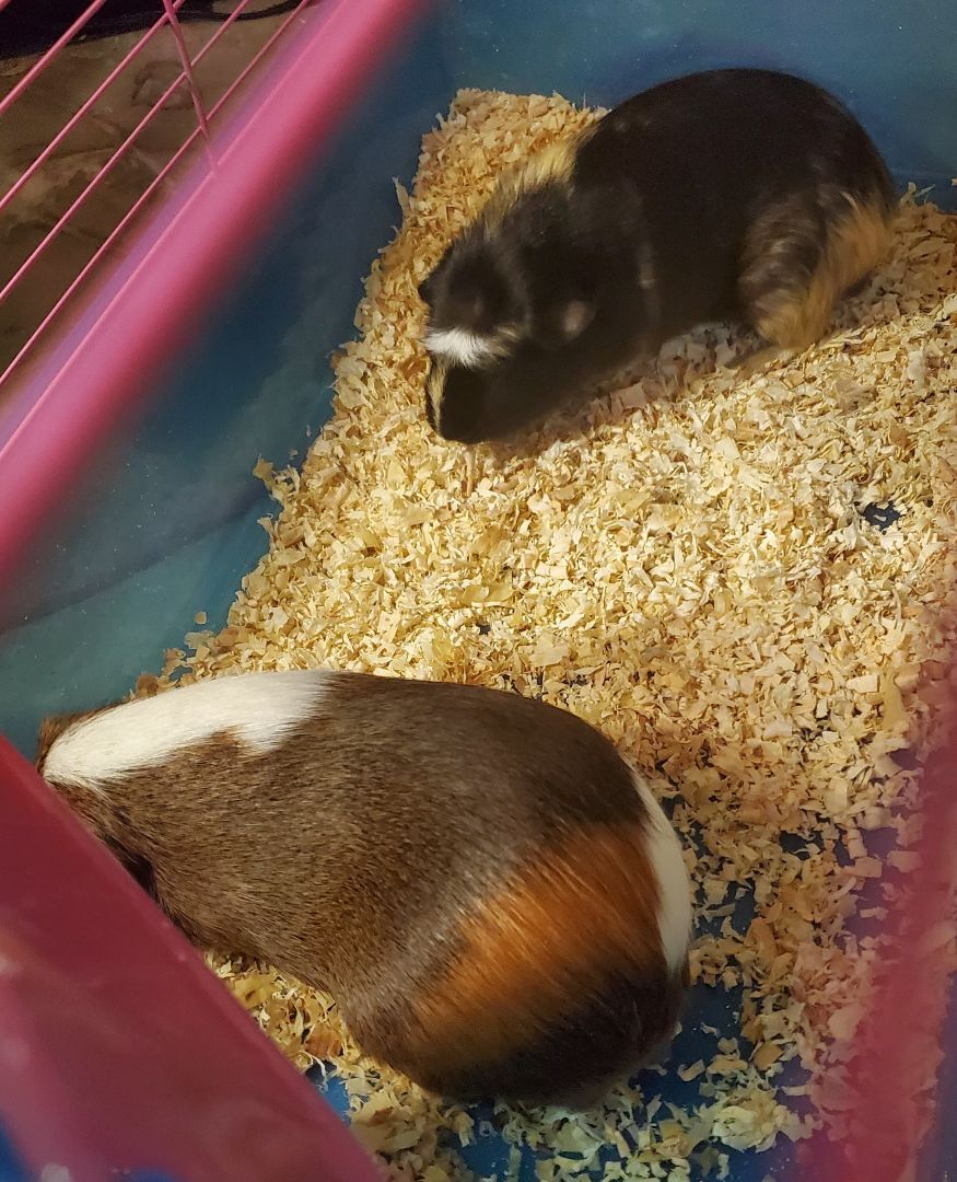 Gorgeous pair of male guineas looking for a new home! Elvis is the black piggie with tan & white patches. Copper is the brown/white guy with a tan patch on his bum & hes a bit chunkier! They both were adopted at a pet store around April 2021 at the age of 5 months. The boys were purchased as a pet for a child so they are familiar with children & handling. The family is no longer able to care for them so these guys are in foster waiting patiently for a new home! Rehoming fee $30 for the pair