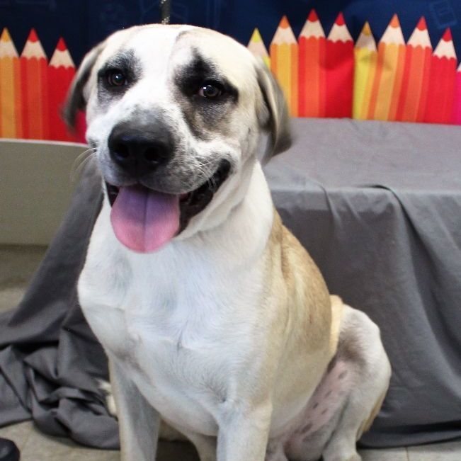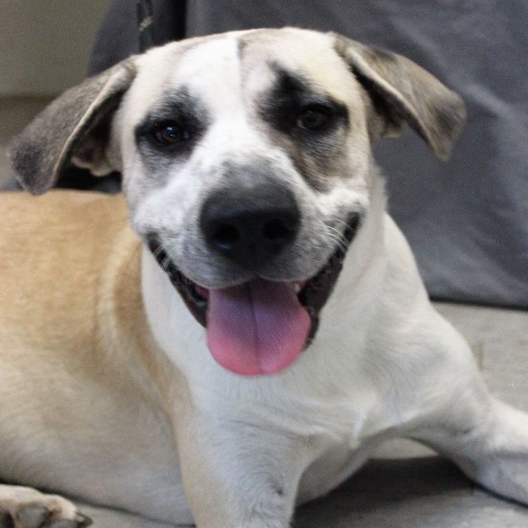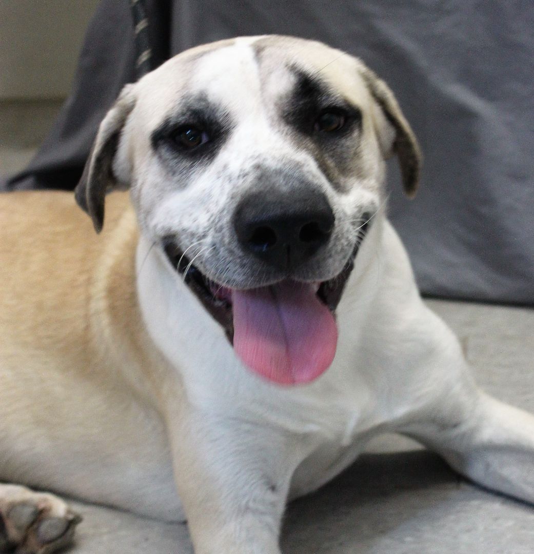 Big loveable lug Starsky fancies himself a lap dog! Its okay that only his head will actually fit, as long as he gets the snuggles he wants. A sweetheart with people and dogs and even cats, he is a good sport all-around. He is happy to play or just hang out. He already knows sit and down, is great in a crate and seems housetrained. Bonus - he has an adorable 3/4 tail (less likely to clear your low table when hes happy!). ~ Est DOB: Jul 2021 ~ Intake weight: 80# ~ Adoption details: calhouncountyhs.blogspot.com/p/adopt.html