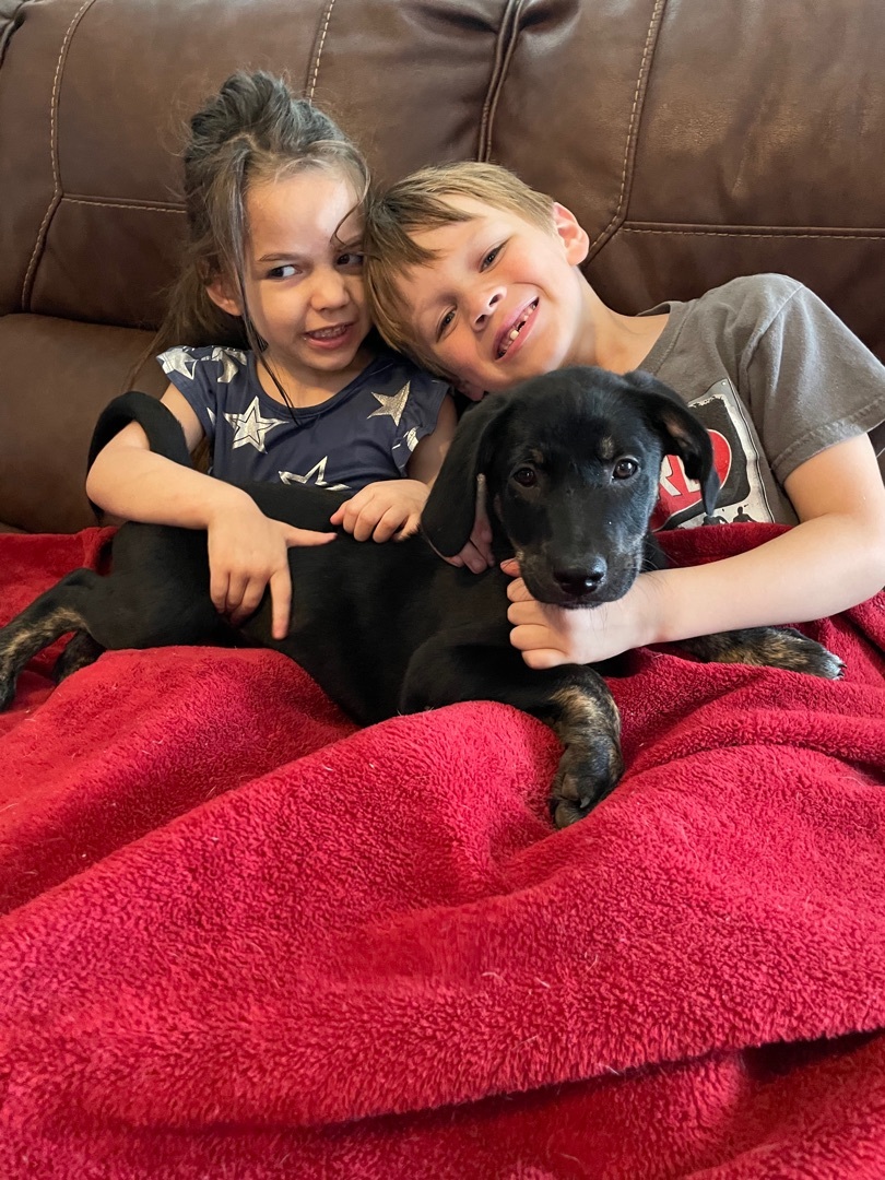 Our adoption application can be found at the bottom of this pets bio. Once your application has been approved, we can arrange a virtual meet and greet with you and Vino! Vino is currently in a foster home in Houston, TX & can transport to an adopter as soon as one is lined up! Meet Vino! Vino & his siblings were abandoned by their "owners". They moved away and took the puppies mom & dad, but left these sweet siblings behind :( The puppies parents were a Hound mix (momma dog) and pitbull mix (daddy dog). We estimate these pups will grow to be medium to large sized pups. Vino is currently 6 months old and weighs about 35 pounds currently, but we do anticipate he still has some growing to do. Vino is fully vaccinated, neutered & microchipped. He is ready to find a family to call his own! Vino currently lives in a home with other dogs and 3 children and he does well with everyone in the home! Vino has not been introduced to cats, but he is still so young that we do not foresee any issues. Vino is *almost* fully potty trained and his foster family is working with him on getting there! He currently does *most* of his business outside, but will use potty pads for the occasional accident inside. Vino is still working on crate training as well. In his current foster home he currently sleeps in a gated off "puppy room" with his siblings and he does well with this. Vino is playful & affectionate. He loves curling up on your lap and getting his puppy snuggles in while catching some zzzs but also loves to run around and play! Vino would love a fully fenced yard or an active family as he (and most puppies) have puppy energy hell need to burn off. All of our puppies under the age of 1 year old are required to attend some form of puppy obedience classes / training with their new adoptive family. Vino is your typical puppy and loves running and playing with his puppy siblings, so another pet in the home would be great, but isnt completely necessary. Interested in learning more about Vino or applying to adopt him? Please fill out an adoption application on our website! https://heartoftheunderdog.org/adoption-application