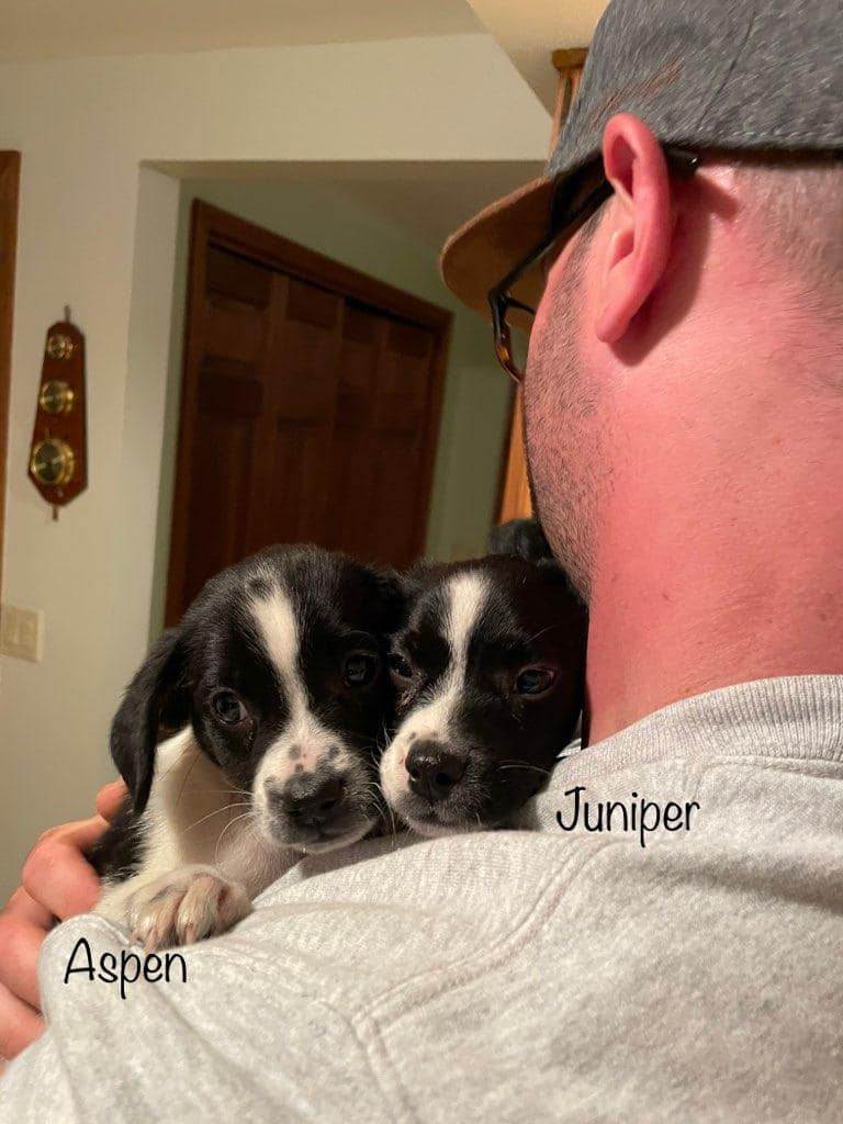 Juniper (female) and Aspen (male) are roughly 9 week old mixed breed pups. Their mom is estimated to be around 35 lbs. They are the perfect combination of mellow and playful. They sleep through the night (no crying) and like to go back into their crate after eating. They seem very mature for their age and even sit down and wait for their food! They have been enjoying a variety of squeaky toys and tennis balls and of course wrestling with each other. They’re very curious about the other dogs in the house, which range in size from small to large. Like most pups, they are constantly on the move exploring the environment around them. Anyone would be lucky to have one of these pups as a friend for life! We will have our first adoption event in 2 years this Saturday at Mike’s Feed Farm in Riverdale NJ 10/1 starting at 10am. Come see all the many dogs we have available!! Apply online ahead of time is strongly encouraged. This way you won’t need to spend time applying in the store. https://www.purrsnpups.org/adoption-application
