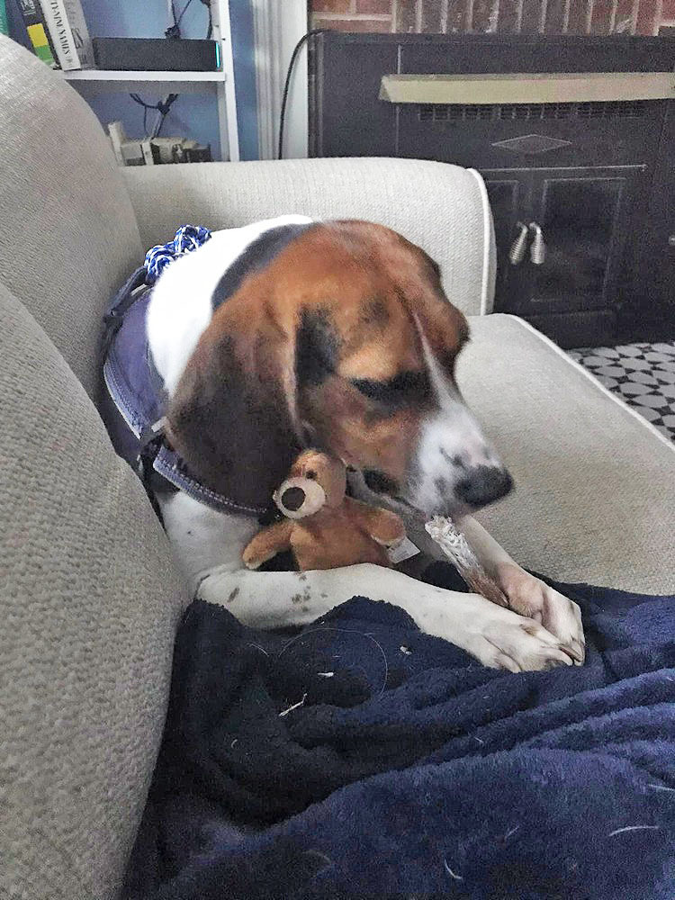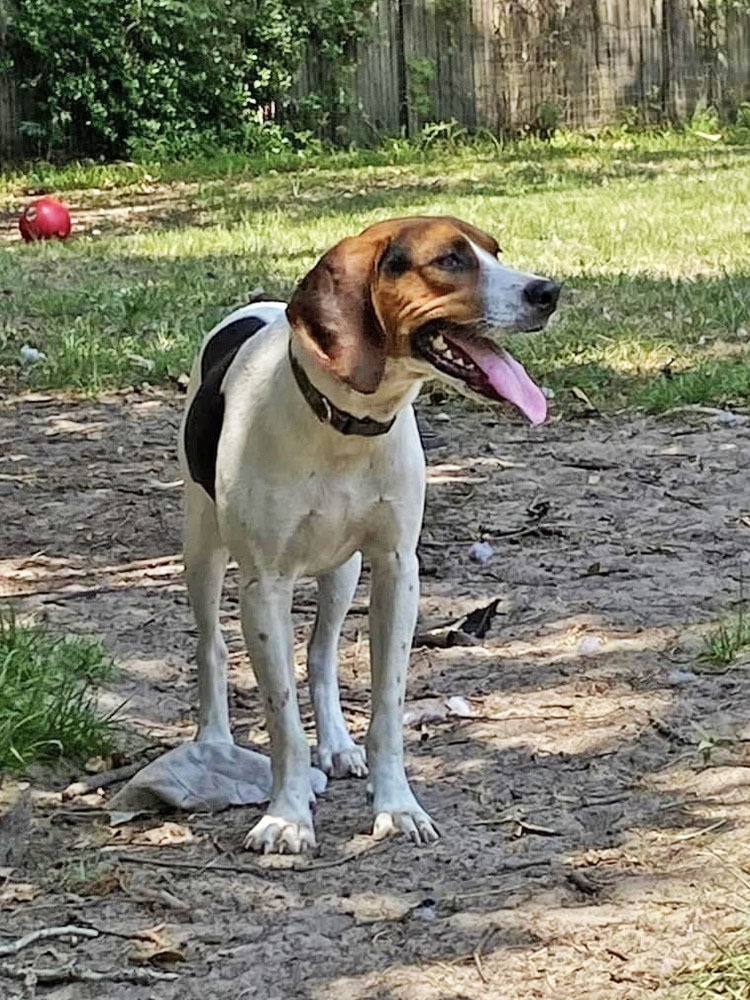 Folsom is one of those amazingly squishy, goofy, and large dogs that have no concept of their own size. His 1-year-old self is best friends with a 6-lb Pom-Chi. This alone makes hearts explode. Folsom loves small stuffed toys and gently carries shoes to where he thinks they should go. He loves to keep a watchful eye over his foster mom when she gardens. Folsom is a sweetheart and in need of an equally sweet and patient forever home. Folsom was abandoned as a puppy and, before he became a Renegade, passed around a lot. He has no concept of what permanent, unwavering love means and consequently is slow to warm up to new humans. Having a dog sibling that he could lean on in the new home would make all the difference. Because when he does warm up and lets his goofy, playful side shine, it is the best sight: Folsom tosses up his chew bones in the air and skillfully catches them again. He hops like a bunny when he is all excited to go outside. And he greets you with happy howls when you return home to him. Through it all, Folsom never lost his spark and hopefulness, and above all, his sweet, sweet soul. Apply today if you can see yourself patiently showing this sweetheart how wonderful this world can be.