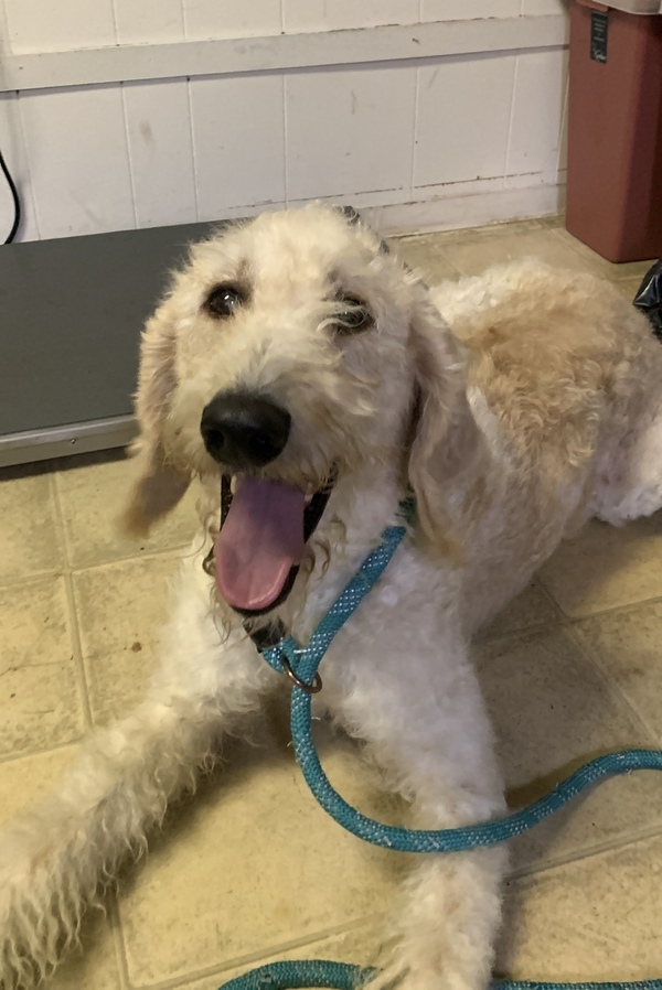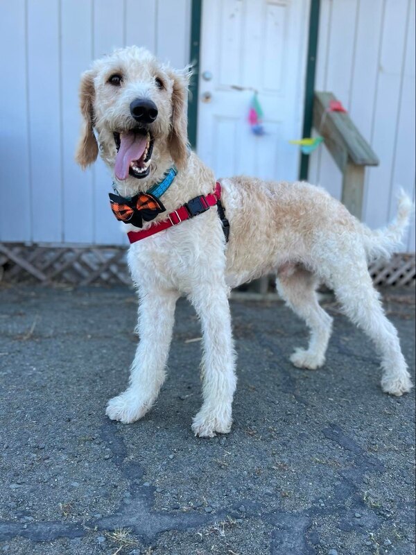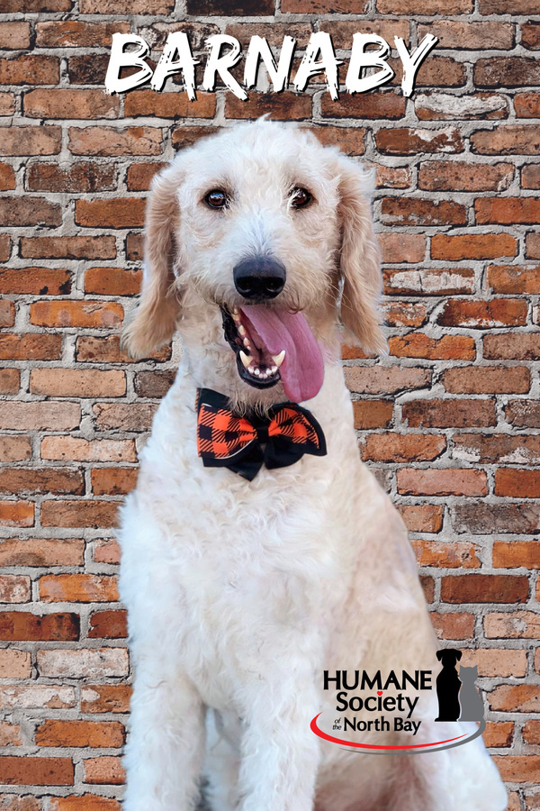 Introducing ... BARNABY! This dapper male Labradoodle is available for adoption at Humane Society of the North Bay in Vallejo. Barnaby is super playful and well, a bit of a big galumph. He enjoys taking walks but needs to refine his leash-walking skills. Luckily, Barnaby appears to be a guy who is eager to please, so he can be easily trained with positive methods. Barnaby is very playful and has a medium to high energy level. Youll need to be prepared for an active life! Long walks, hiking or jogging will definitely be a part of your future life as dog-parent to Barnaby. These dogs tend to do well with children in the home, but sometimes are better suited for older kids since they could knock smaller family members over with their size and exuberance. He has not yet been tested with kids or other dogs. To express your interest in Barnaby, or any of our other adorable adoptable pups, fill out an adoption application at https://www.hsnb.org/dog-adoption-application/ and click submit. His Adoption fee of $450 means he will come to your house neutered, microchipped, and up-to-date on his vaccinations. Primary Color: Buff Weight: 60lbs Age: 2yrs 4mths 3wks Animal has been Neutered