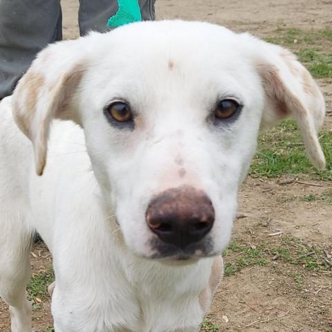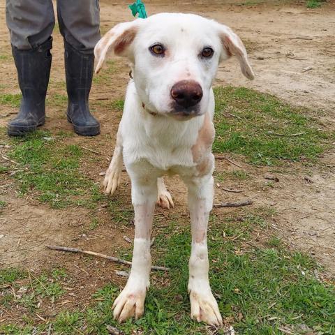 Hello potential family members... let me tell you something about me... Pardon my french, but my first 1.4 years of life were HORRIBLE. I didnt have a snowballs chance in hell of surviving the neglect and cruelty I suffered at the hands of "owners" But I will tell you what, so many people demonize the pound people but they LITERALLY SAVED MY LIFE!!! So be NICE to them- they are responsible for cleaning up the mess our society creates... we are souls, not numbers for them!! Ok, off the soap box... More about meeeeeeeeeee I am a cool, happy and beautiful boy who will be your bestest buddy for life. I love people, I am great with other dogs, I am the best all around guy you can know! I am a white lab mix- maybe with spaniel cause if you look at my pics from the side I do have a spaniel head and some beautiful red blotches :) But if you look at my face you will see the softest eyes and sweetest smile :) I am 2 yrs old, only about 40# and likely will top out at 45-50#. I have two hairless spots, from the pressure ulcers and surgeries of my past life- seems like a bad nightmare now. I have gained weight, gained confidence and am having fun with my friends. I do need a strong leader as my forever mommy or daddy (or both). I am the happiest and sweetest boy when I know you are in charge and I dont have to worry about it :) I am looking for a LOVING and RESPONSIBLE family, one who will take me places, love me forever and actually feed me on a regular basis!! And yes, a vet that will care for me if I get sick. Not too strenuous I imagine... Do you fit that profile?? If so, apply apply apply!!!! I am waiting!! Local adoption fee is $200 (in TX) Out of state adoption fee is $400 (includes transport to your area)