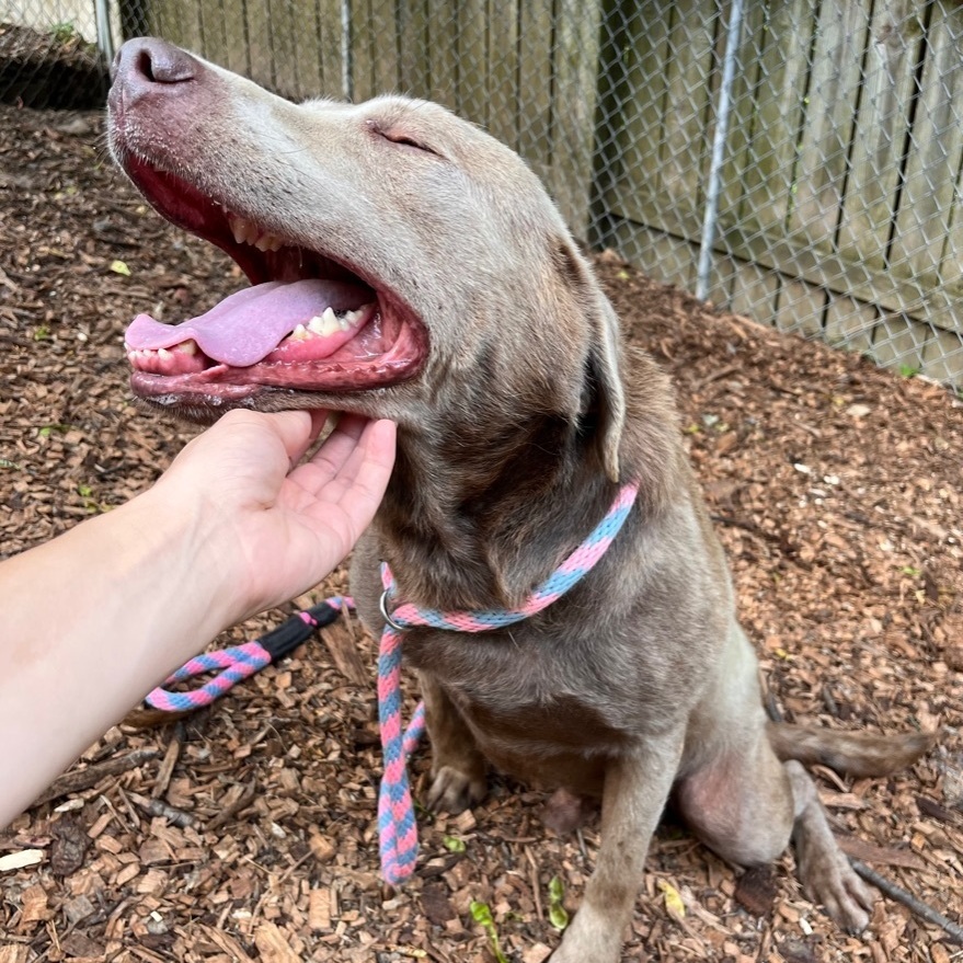 hi Argento! This happy boy is a 4 year old "silver" Labrador retriever. He was surrendered by his breeder from Lancaster as he was no longer needed. This good boy is a rambunctious, bouncy and silly boy that is finally enjoying the good life. So far, he has not meet a stranger and loves everyone. He had a lot of fun in the playyards playing, running around and getting a lot of loving. He enjoys a good brush and yummy treats. Argento is looking for an active family that will keep up with his energy. Purely because how excited he gets when he sees people, he will not be placed with really young children (for fear of knocking them over). Older kids are totally fine! He will also need to meet any resident dogs. Argento will come neutered, vaccinated, dewormed, microchipped and 4dx tested. His coat is looking a bit thin right now but we have no concern - with good food, it will be back to its shiny glory. **If you are serious about adoption, please fill out the adoption application on our website www.phoenixanimalrescue.com His adoption fee is $450**
