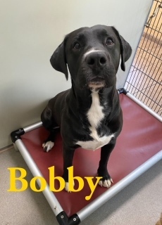 Bobby is a 1 - 2 yr old Lab mix. He has a high energy level, so he will need plenty of daily exercise. He is loose and wiggly when greeting, and likes to sit by his person for snuggles and kisses. Bobby walks well on a leash with no pulling. He is food motivated, and knows the commands sit and down. He mixes well in a kennel with other dogs, but is intensely interested in cats in the shelter environment. Dogs are generally tested with dogs of their own size; and dog meets with the resident dogs are always encouraged. Our cat test should be used as a general-purpose screening only to rule out overt aggression; we always recommend caution when introducing dogs to cats in the home. Recommendation on suitability of placement with children by their ages is based on behavioral observations including energy level and response to body handling. We never recommend leaving young children unsupervised with dogs, and we cannot guarantee the behavior of dogs with children, other pets, or cats. Behavior evaluations should be considered as a snapshot of the behavior of the dog at this point in time; JHS believes all dog families need to be prepared to invest time and energy into training as well as provide common sense management of their new dog. We always encourage family to do some research on the breeds or mixes of breeds prior to adoption as many can have some unique characteristics that may or may not fit into their families. Always remember that the majority of dogs at our shelter have been exposed to or may have kennel cough. Kennel cough is contagious to other dogs, please talk to your vet if you have any questions about kennel cough prior to adoption. Please ask your adoption counselor at time of adoption if you have any unanswered questions regarding illnesses and treatments of the pet that you are adopting. For more information about this dog or any others at our Shelter, please visit www.joplinhumane.org. We are the Joplin Humane Society in Joplin, Missouri. 417-623-3642.