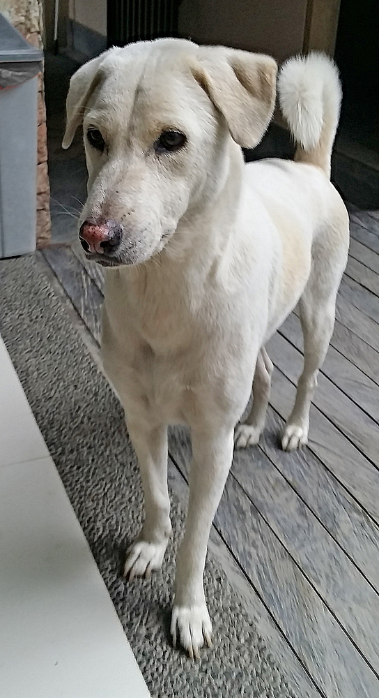 Age: almost 9 years old Housetrained: absolutely Energy level: moderate Needs to be the only dog in his home. Breed: lab cross Weight: 46 lbs Hi there! My name is Alley and I am an amazing dog if I do say so myself. I am relaxed at home and can hunker down for a looong nap after a good walk... (zzzzz). I certainly do enjoy being the only dog in the household as I so appreciate human attention and kindness. I am a guy who likes my neighborhood walks. Hey, with a name like Alley, that was obvious, eh?! I love my walks with plenty of sniffing and lots of catching up on local dog news. I am respectful of human possessions but I do like my own basket of sticks to chew on. Your shoes, yoga props, delicate plants, and other personal items are definitely safe around me! Another thing I like to do is to search for hidden treats. My foster mom says that I am an expert at making them shower out of a stuffed item, like a kong toy. I do have a few struggles to maintain my calm when I am approached by strangers as well as dogs I dont know. I have made great strides, however, and I so appreciate my amazing support team who have been helping me with this, including two super skilled dog walkers, a great, great trainer, as well as others, all wanting to see me thrive. I am working on remaining calm and carrying on when out and about amongst strangers and dogs. Due to my bite history, when feeling threatened and unsure, I am very agreeable to wear a muzzle outside and if there are new people in close proximity. My support team says that I am well on my way to becoming a calm, confident dog and that I am building positive coping strategies for life in my forever home. Ideally, my team would like to help me to make a very gradual transition from my foster home to my forever home and, in a perfect universe, to find someone willing to keep working with my dog walker and trainer routines for a few months, to ensure success. Here is what my team (I like to call them my fans) have said about me - "Alley has shown such determination and effort and would be well-matched with a human who can reward him for his admirable efforts." Is there a loving adopter out there who would like me to join them? Please come and meet me soon. I am praying to the Universe everyday that I will finally find my place in the world – hopefully with you. HISTORY: I had a challenging beginning in Bali. Rescuers found me on the streets. I was very ill from blood parasites but with good veterinary care, I fully recovered. I then spent several years sharing a courtyard with several other dogs. When the family who had taken care of me there were returning to their home country, I was selected for rescue to Canada. Since my arrival here, I have had a few challenges, most of which I have recently overcome. How terrific, eh?! I am neutered, vaccinated and microchipped. My adoption fee is by donation. Disclaimer: It is important for all applicants to visit our website, http://www.lovedatlastdogrescue.ca/adopting/ and to read about Loved at Last Dog Rescue.