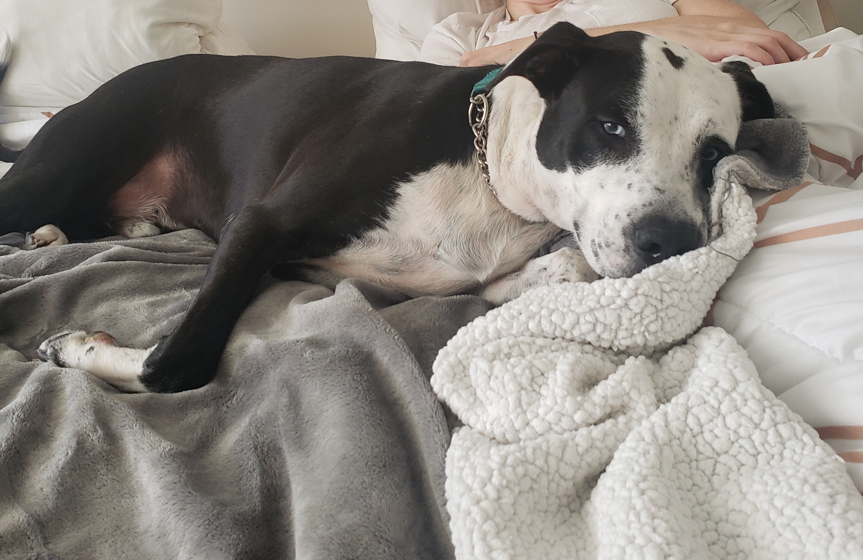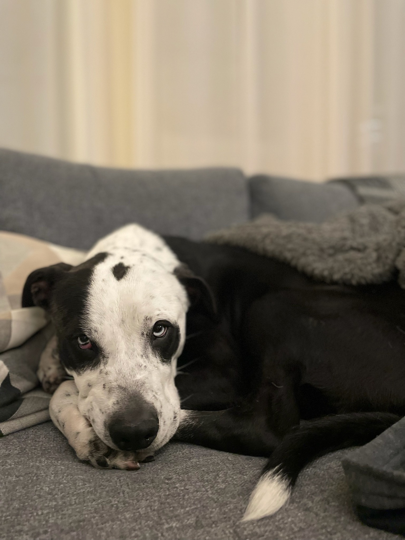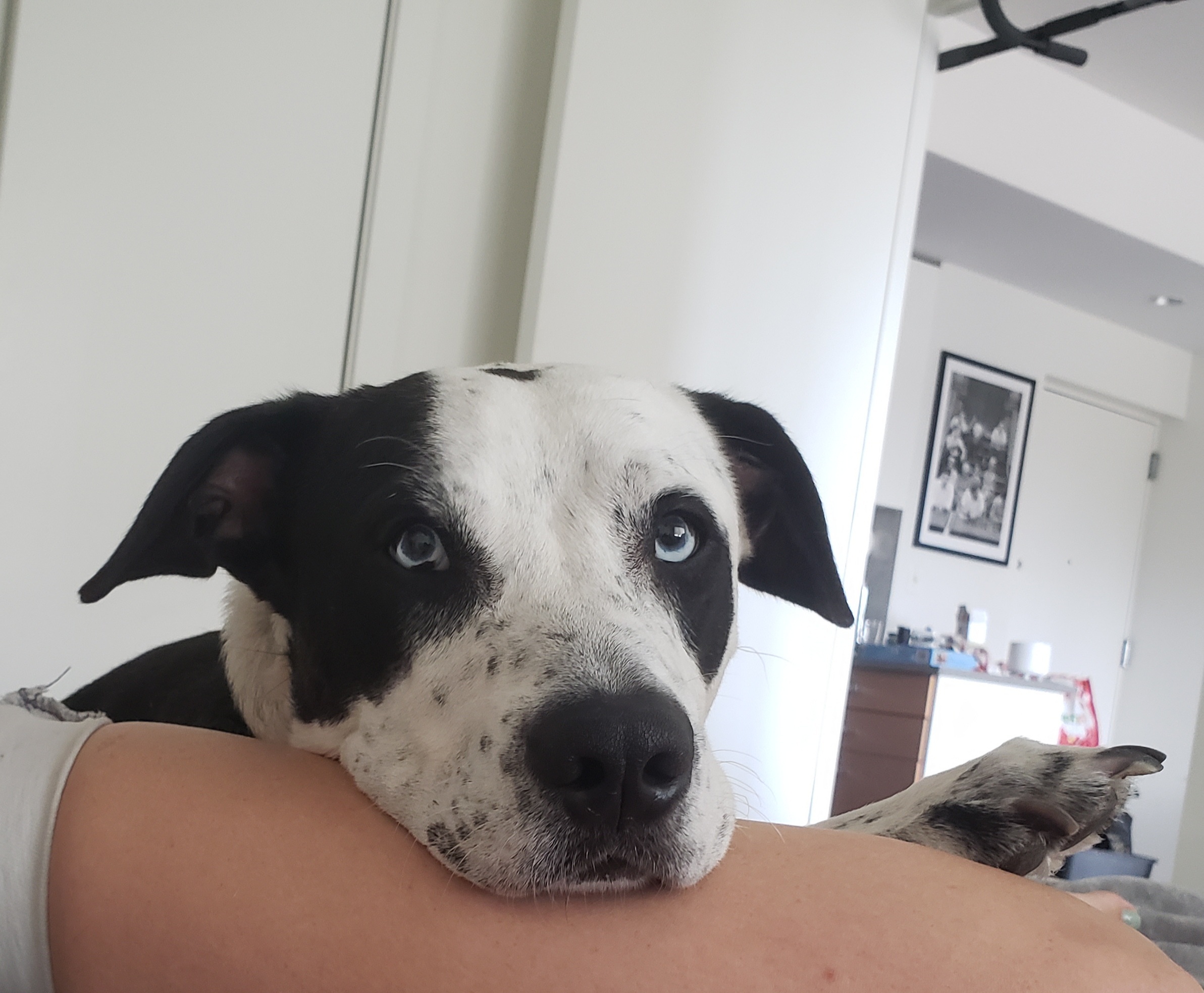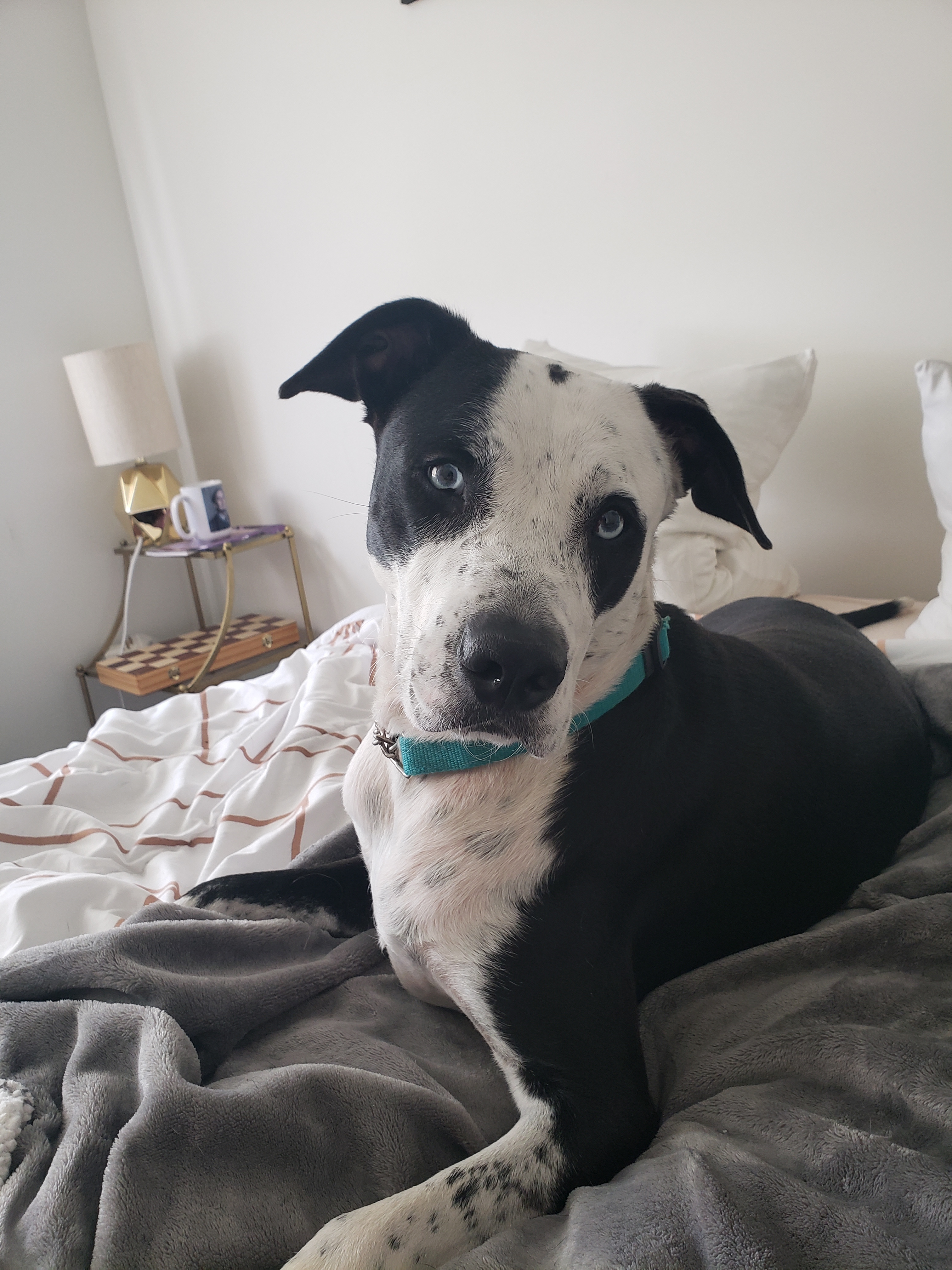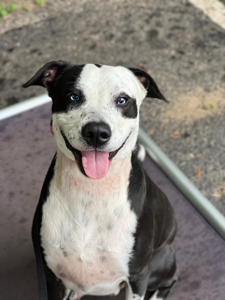 Meet handsome Domino! He is a 1 year old, 50 pound, male, Labrador Mix. This beautiful boy has arrived in NYC from South Carolina. Domino is confident, outgoing, goofy, very playful and LOVES to give kisses. This affectionate, athletic dog is who you have been searching for. He would be great for weekend hikes, a daily jog, a game of fetch in a yard of his own, and is always up for a couch cuddle. After a long walk, Domino is ready for a long snooze at your feet or on the couch by your side. He will happily treat your comfy couch as his own dog bed. He is a sneaky boy who won’t hesitate for a second to steal a piece of cake off the counter or grab a bite of your delicious takeout when you get up from the table. You can’t be mad at this face though with those icy blue puppy eyes. Domino would be great in a home with older children and will thrive as the only dog in the home. Domino is looking for a home in a quiet neighborhood or more rural setting. He is not a natural city boy, but we cant blame him. He is very smart and eager to learn new tricks. Although he loves the company of humans, Domino needs to be the only animal in the household. He has all the potential in the world, he just needs a little paw-holding right now. He is a strong boy too, so needs an owner confident and capable of being his pack leader. His foster mom loves taking him for long walks in the park, which Domino could spend all day doing. If you are looking for an active dog to do all the fun activities with and then have a cuddle buddy at home for a movie night, Domino is your boy! He has so much love to offer and he has the personality to match those dazzling eyes! **Domino is also available for fostering-to-adopt!**Domino is neutered, microchipped and up to date on his vaccinations. For more information about him, please fill out an application at www.ALRcares.com and email Grace@alrcares.com. We schedule meet and greets for approved adopters only, an application is the first step in our approval process. Thank you!