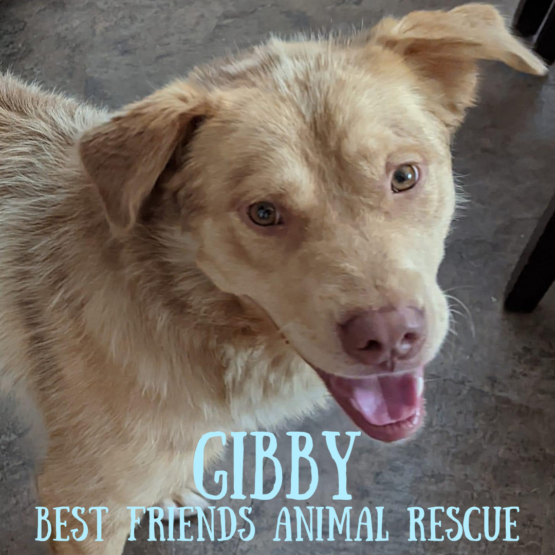 Gibby One years old Neutered male Retriever mix Age appropriate vaccines Microchipped Sweet boy. He is a big lover and definitely wants to be near his people and dog friends all the time. He does well around other dogs and doesnt really care about the cat. I havent seen him with kids yet. He came to me without any training so we are working on sitting, house training and basic manners. He is starting to follow the other dogs leads. He does have some food/toy aggression. It is not all the time but occasionally he snaps at others getting too close to his toy or bone. To apply to adopt with Best Friends Animal Rescue: Go.bfarak.com/adopt Adoption fees cover alter, age appropriate vaccination, microchip, medical expenses and ensure we can continue to help other animals in need.