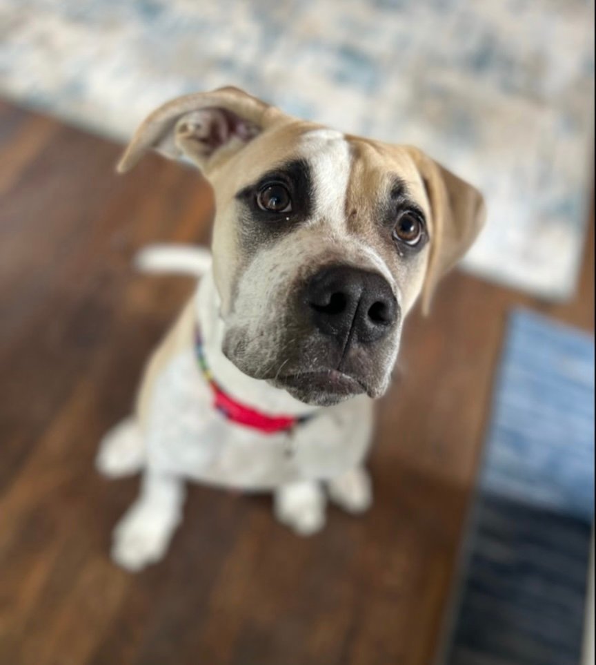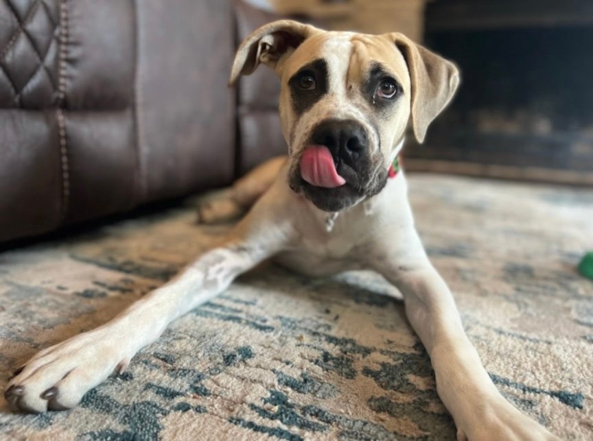 Hello, my name is Mac! I am a 5 month old mastiff mix who was surrendered to my veterinarian for financial reasons. I am a long-legged boy figuring out how big I might be! I am mostly house broken and know "Sit!" and "Lay Down" ( I am working on "Stay!", "Leave It!" and "Come!") I am a sweet boy who loves two-legged and four-legged friends. When I am left unsupervised I entertain myself by eating whatever I can find, so I need a home with an active, attentive family who has other dogs to play with! Could you be my forever home? Macs adoption fee is $250. He is up to date on age appropriate vaccinations, neutered, and microchipped.