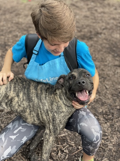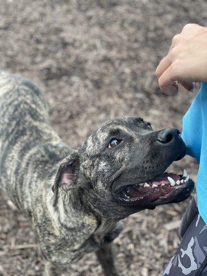 Jinxx is a very gentle boy who loves to get scratches from anyone who is willing to give them. His coloring has to be seen to be believed. He is a beautiful black and brown brindle that gives him a unique and handsome look. He just wants someone to love him and would probably be fine with a canine sibling too. Jinx will surely bring someone good luck, just come by to meet him, and youll think so too.