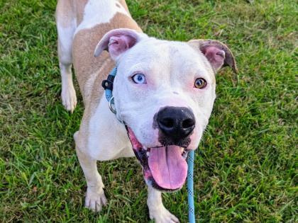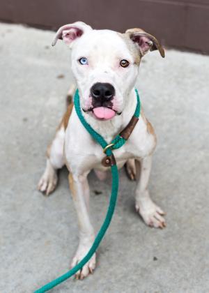 Huckle Barkle Finn is a year old and at 38 lbs is a bit on the skinny side. He could definitely use some TLC to get his weight up. Hes pretty new here so we dont know a lot about him. We do know hes sweet and friendly and a good boy. Hes also very striking looking with one blue eye and one brown eye. Wed love to see this young pup in a good home where he can thrive and put on a few pounds. Is that your home?