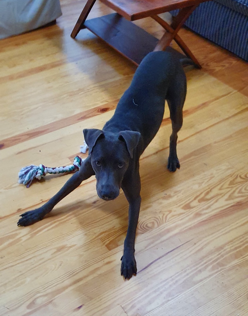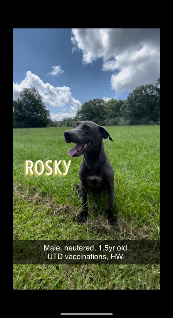 Rosky is a gorgeous, silver-blue mixed breed pup in search of his forever home. He has all the makings to become a wonderful companion for some lucky person! Update from Roskys foster: Rosky has made a lot of progress in the last couple of days. He is still nervous but his confidence is increasing daily. His house-training skills are improving, too, and he is learning to engage and play with the dogs he meets while out and about. No signs of aggression and no barking. Now that he has settled in a little, his personality is really coming out. He’s such a great guy! Smart, polite and wants to please. Loves to play and engage with me, but adapts easily to quiet time too. He’s happy to play with his toys by himself or snooze at my feet -- though he has hinted that he’d really love to join me on the couch. He isn’t a big fan of the crate – at least not with its door closed – but I have been able to leave him alone in the house for 3-4 hours so far without problems. Walks really well on a leash, though he startles easily and is still timid meeting new people. I think he’d do particularly well in a home with a confident, older dog. But anyone who can give this guy a calm and loving home is going to be rewarded with a dream dog! History: Rosky came to our partner shelter in Mississippi as a stray, so not much is known about his past. Hes estimated to be about 1.5 years old, and is a nice medium size. Rosky is neutered, up-to-date on vaccinations and has a heart worm negative status.