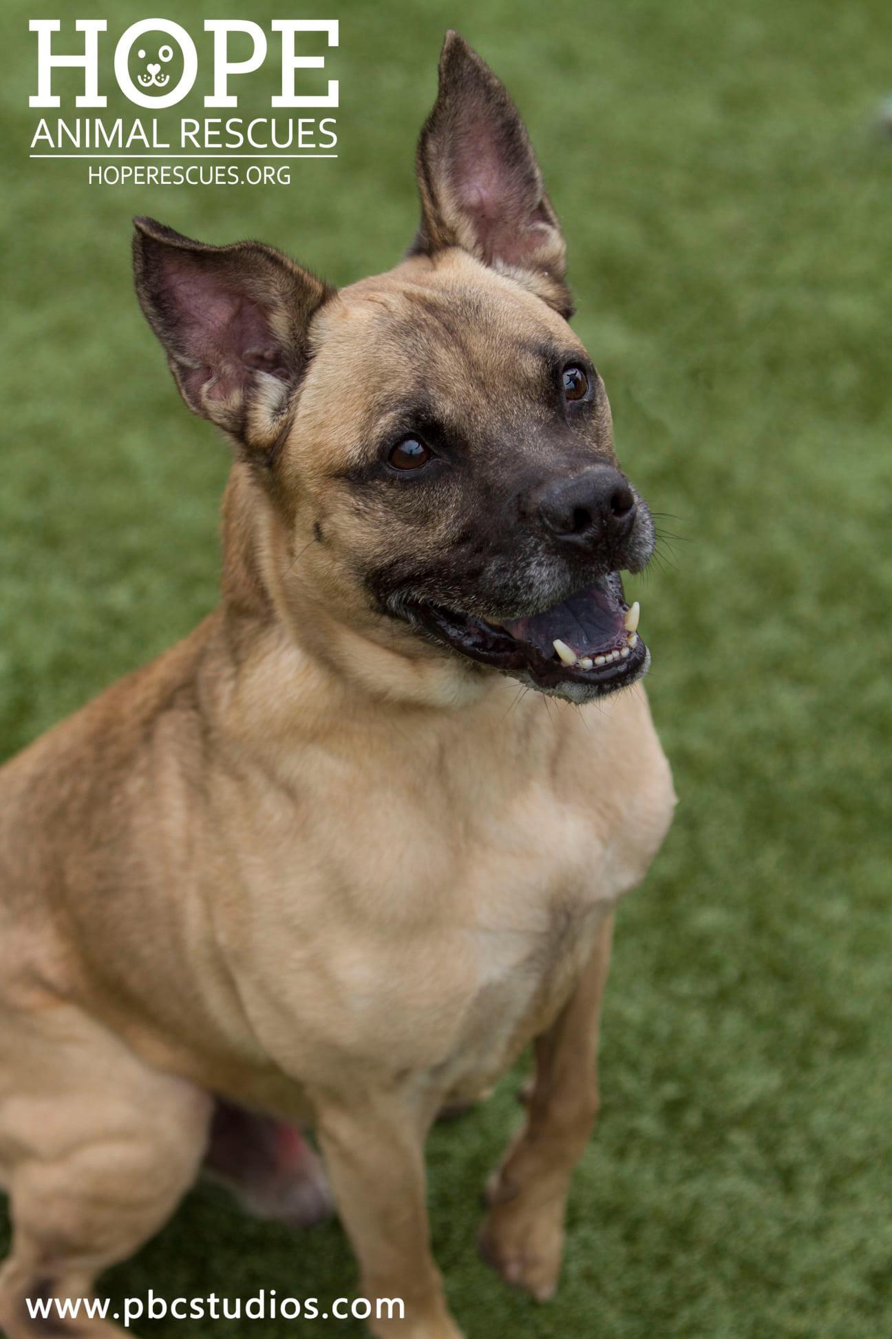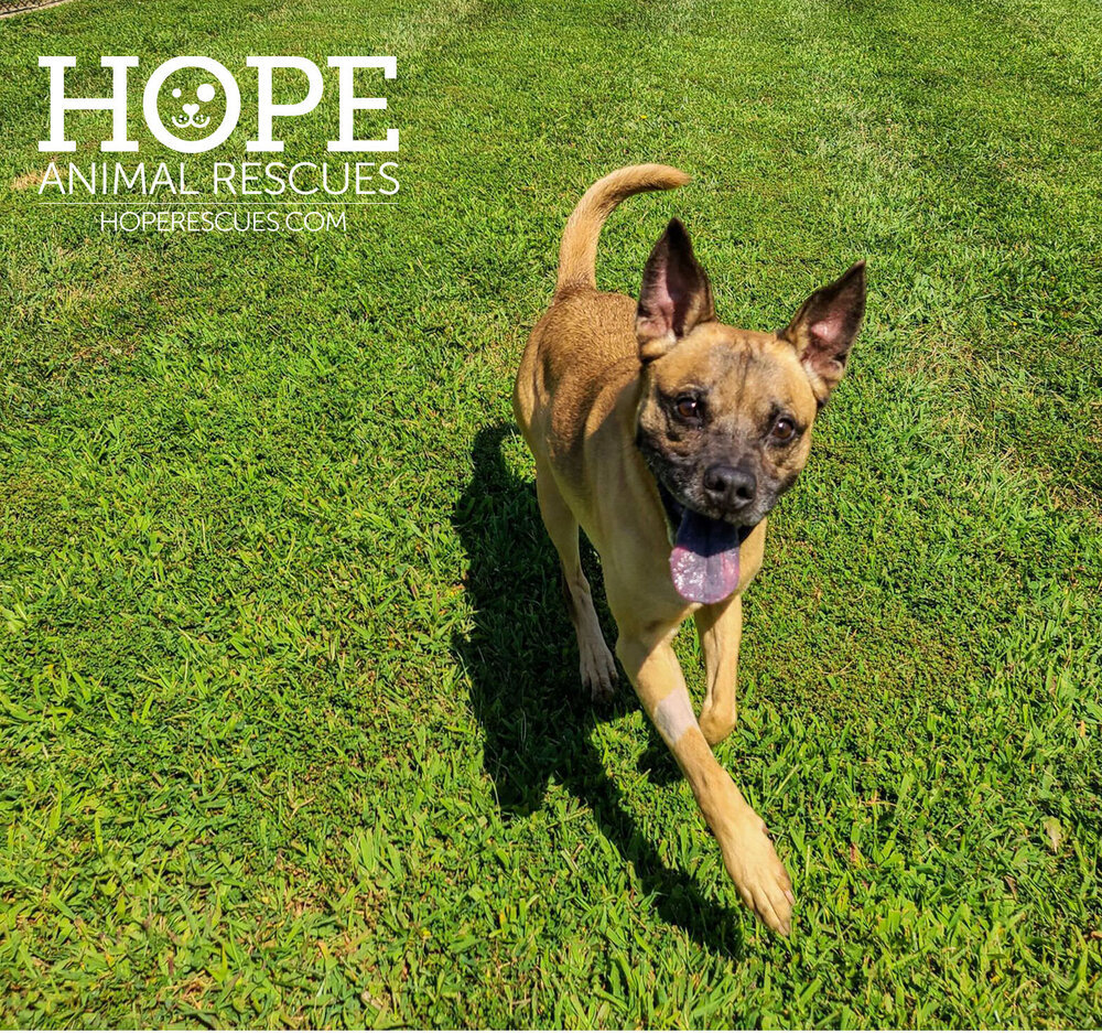 Eddie is a definite Heinz 57.. we think he is part shepherd but really have no idea what else. He is only 35-40 lbs. and knee high. He is really sweet, crate trained, takes treats very gently, active and playful. He does not like other dogs, or cats, so he would be best as an only pet. IF YOU ARE INTERESTED IN ADOPTING, PLEASE FILL OUT AN APPLICATION FROM OUR WEBSITE: www.hoperescues.com. Our adoption fee is $225.00 for all our dogs. This fee includes: Spay/Neuter, microchip, all current vaccinations, and flea/tick treatment. Our dogs are also given monthly heart worm medication in our care. Disclaimer: Visual breed identification in dogs is unreliable, so for most of our dogs, we are only guessing at breed mix. We do our best to describe our dogs based on personality, not breed label.
