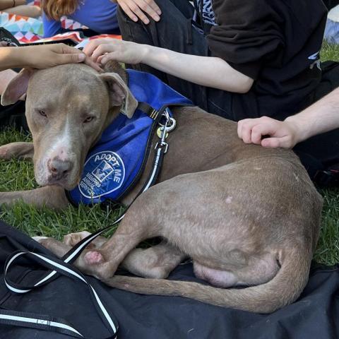 Moodel went to Rhodes on September 26 for a counseling event. As a big boy, he was very chill and loved the pets everyone gave to him. He loved the humans and even sat down with them for more pets. He did very well with people and knew to potty outside. However he did not like another puppy to get around him. Fun fact about Moodel is that hes missing his teeth! He only has his canines so he can still eat. This pet has been marked as at-risk, meaning he or she has behavioral concerns that need to be addressed outside of the shelter as soon as possible. MOODEL has been marked at-risk due to increasing kennel stress. Pets marked at-risk could be considered for euthanasia (put to sleep). Interested adopters, please email mas@memphistn.gov. Interested rescue organizations, please email mas.rescue@memphistn.gov immediately for next steps. Moodel was part of a small play group on 10/5. he was friendly, social, and chill. he also walks very well on leash with little to no pulling. Moodel was part of a playgroup on 10/6. He was friendly, social, and chill. He was fixated on a metal bowl outside. He did not mind the rough and rowdy playing dogs and took correction from handlers.