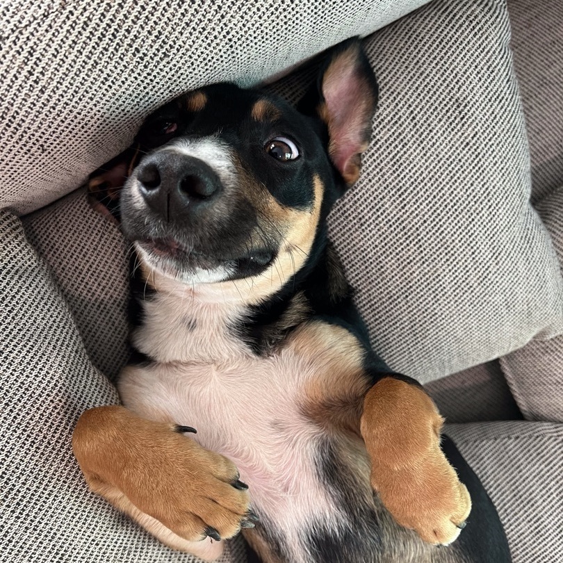 Introducing Good Boy Hector. He is the complete package. Playful, sweet and a little bit silly at times. When he has something to say, he spells it out like a beagle: Aayy, Oow, Uow! (Followed by a head tilt). Hector was surrendered to a kill shelter in SC together with him mommy and 2 other puppies after their owner died. His mom had wounds on her neck from being chained up her whole life, so this was probably the best thing that could have happened to Hector. Hector is 8 months old and weighs 28 lbs. His mommy (shown in the video) is a black and white 25 lbs beagle mix. We think that Hector will end up around 35 lbs when fully grown. When Hector came to us he had a mild case of "cherry eye" that can be seen in some of the photos. Hector has since had his surgery. He has made a complete recovery and his eye looks perfect. He does have a piece missing from one of his ears after being attacked by a bigger dog. Its not really visible facing him forward, but you can see the cut from behind. It is located right where the ear folds. Photo in the gallery.